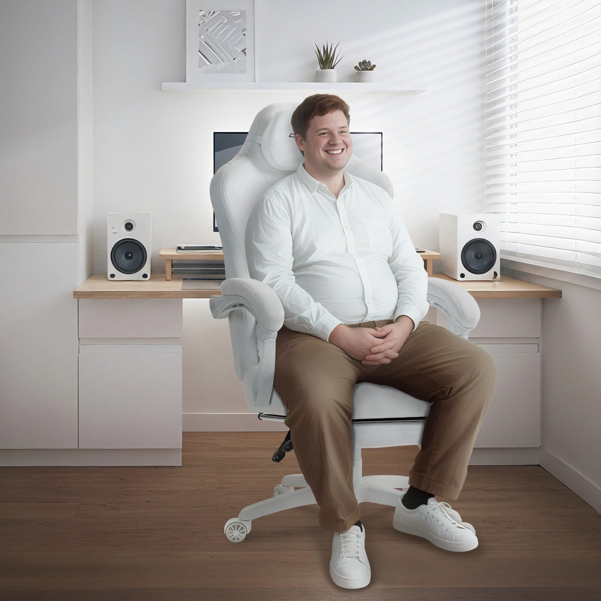 Dowinx Big and Tall Gaming Chair, Suede Fabric Game Chair with Pocket Spring Cushion, High Back Gamer Chair Ergonomic with Footrest for Adults Office, 440LBS, White