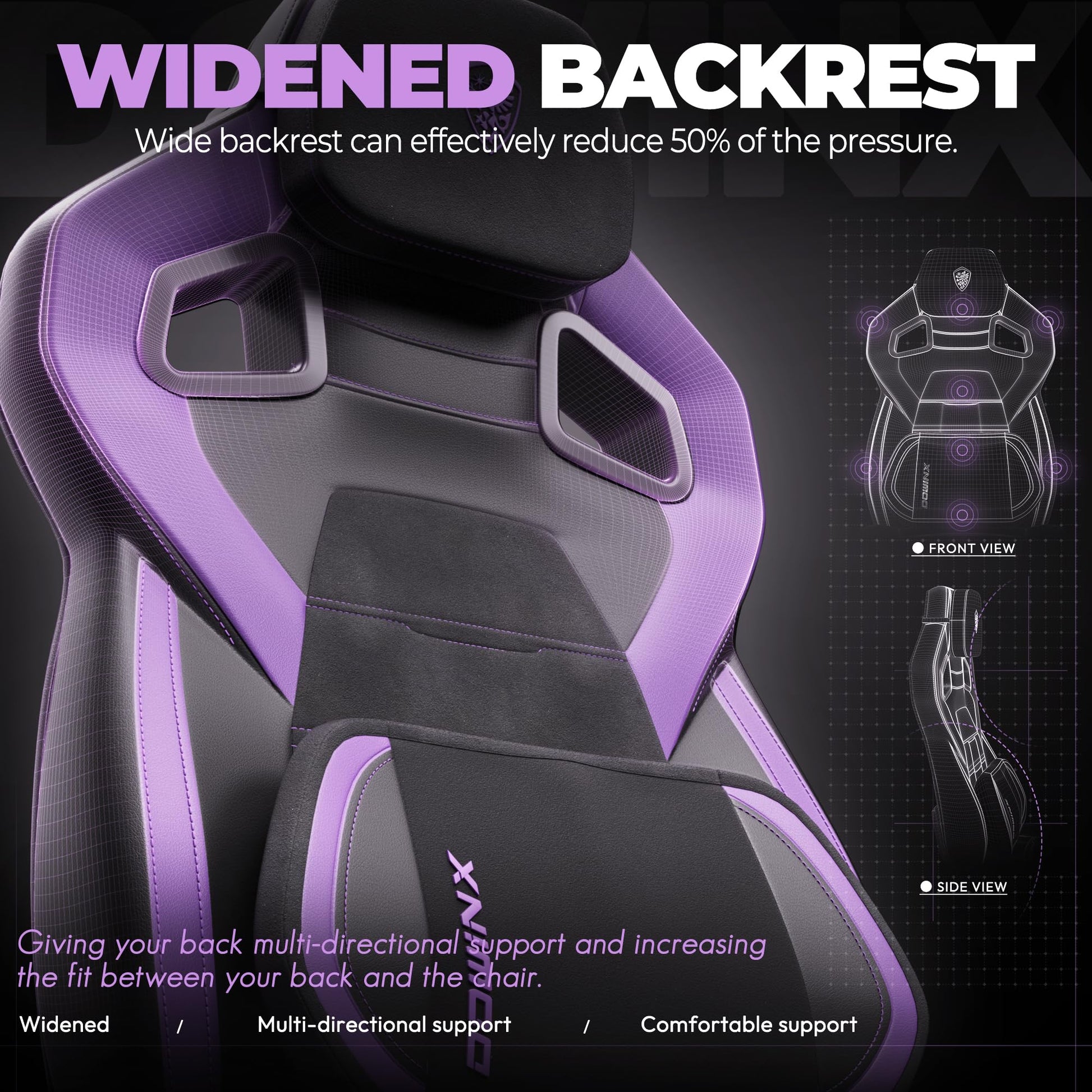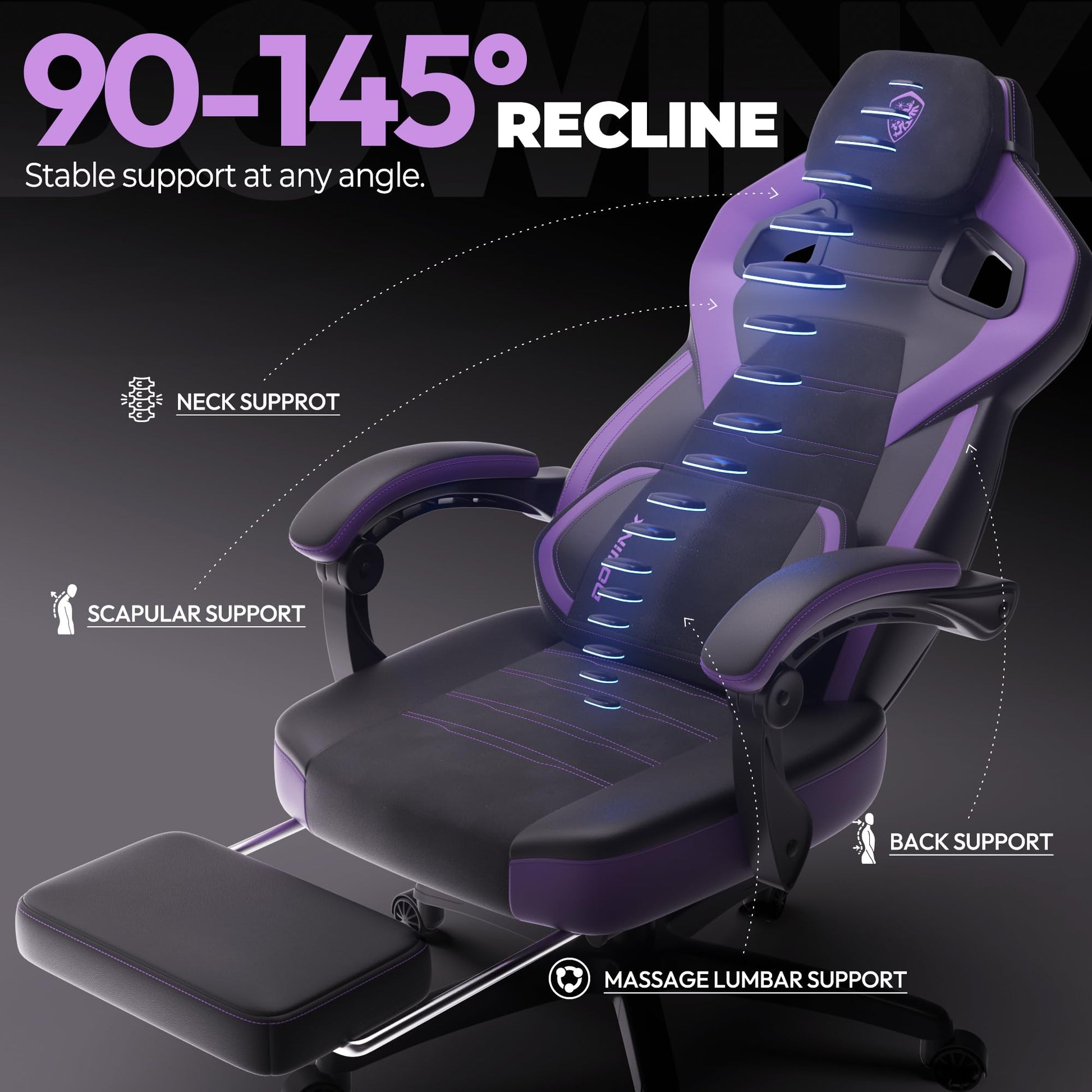 - Ergonomic Wide Backrest for Full Support: The Dowinx gaming chair features a wide backrest that provides exceptional support for your back and spine, making it ideal for heavier people. It effectively relieves pressure, ensuring long-lasting comfort and support during extended gaming or working sessions.