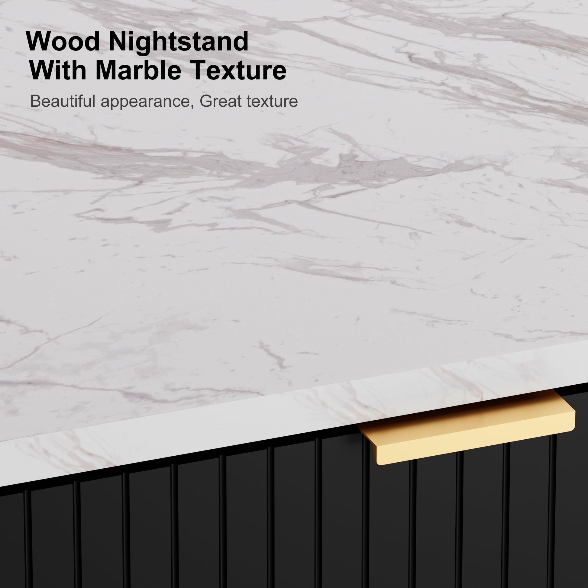- Elegant gold handles and faux marble top accent