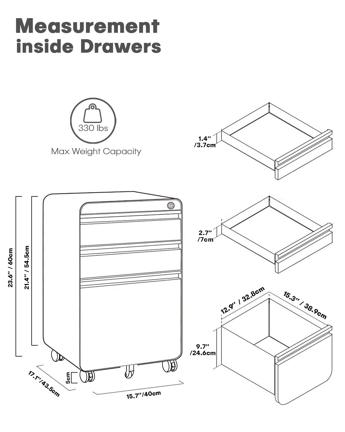 - [Lockable File Cabinet] Ships fully assembled except for the casters. 1 lock secures all three drawers, 2 keys in case of missing. The anti-tilt mechanism allows only one drawer to open at one time