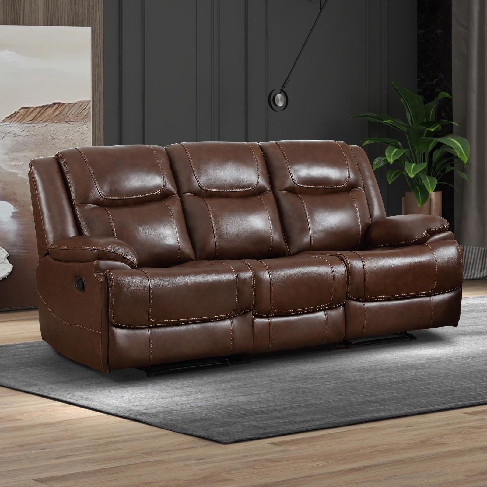 - Wide Design: the chair seat width of this genuine leather recliner set is 21”. The sofa couch armrests are featured as padded kind, blend practicality with style as well. The set saves space, maintains a tidy look, enhancing comfort and convenience during relaxation or gatherings
