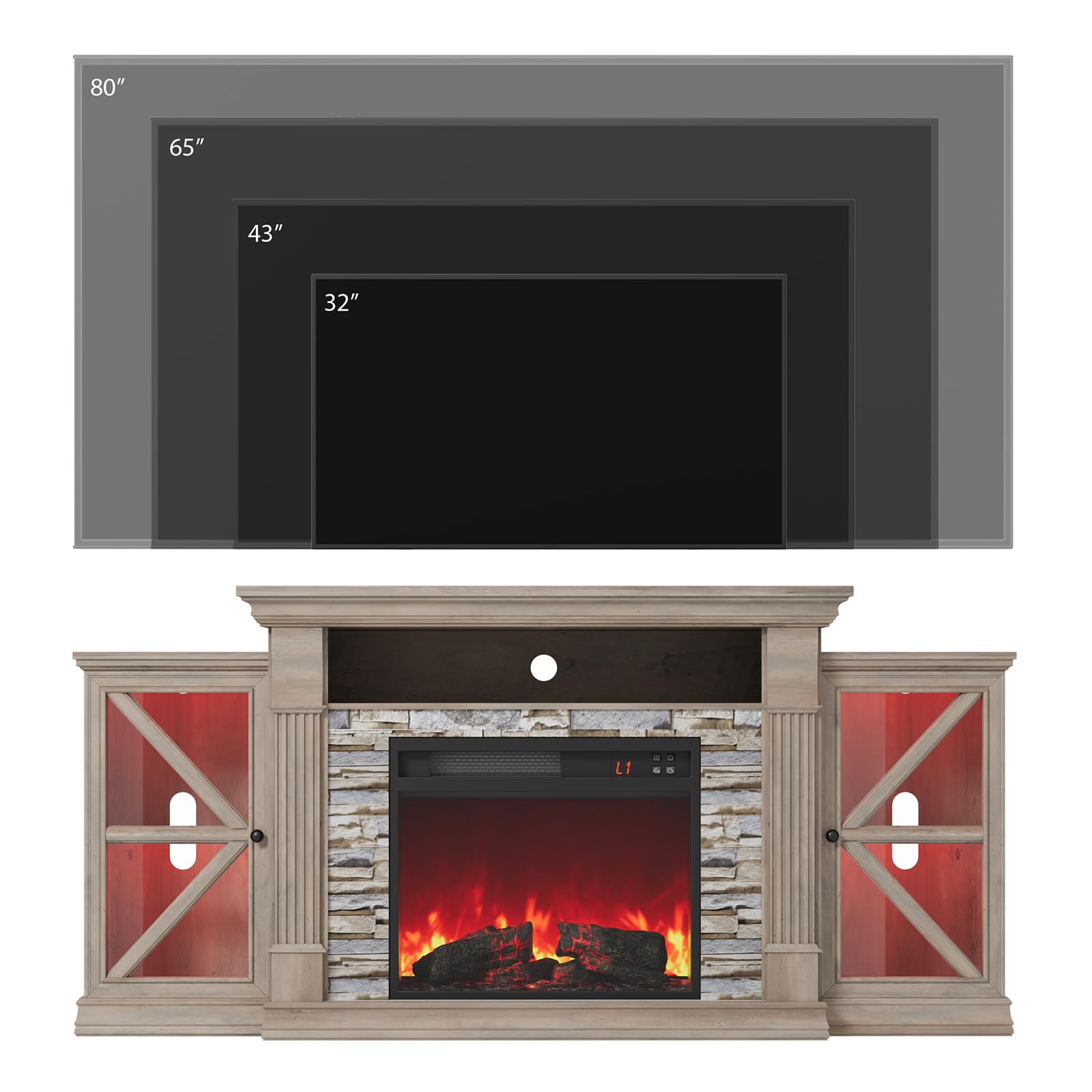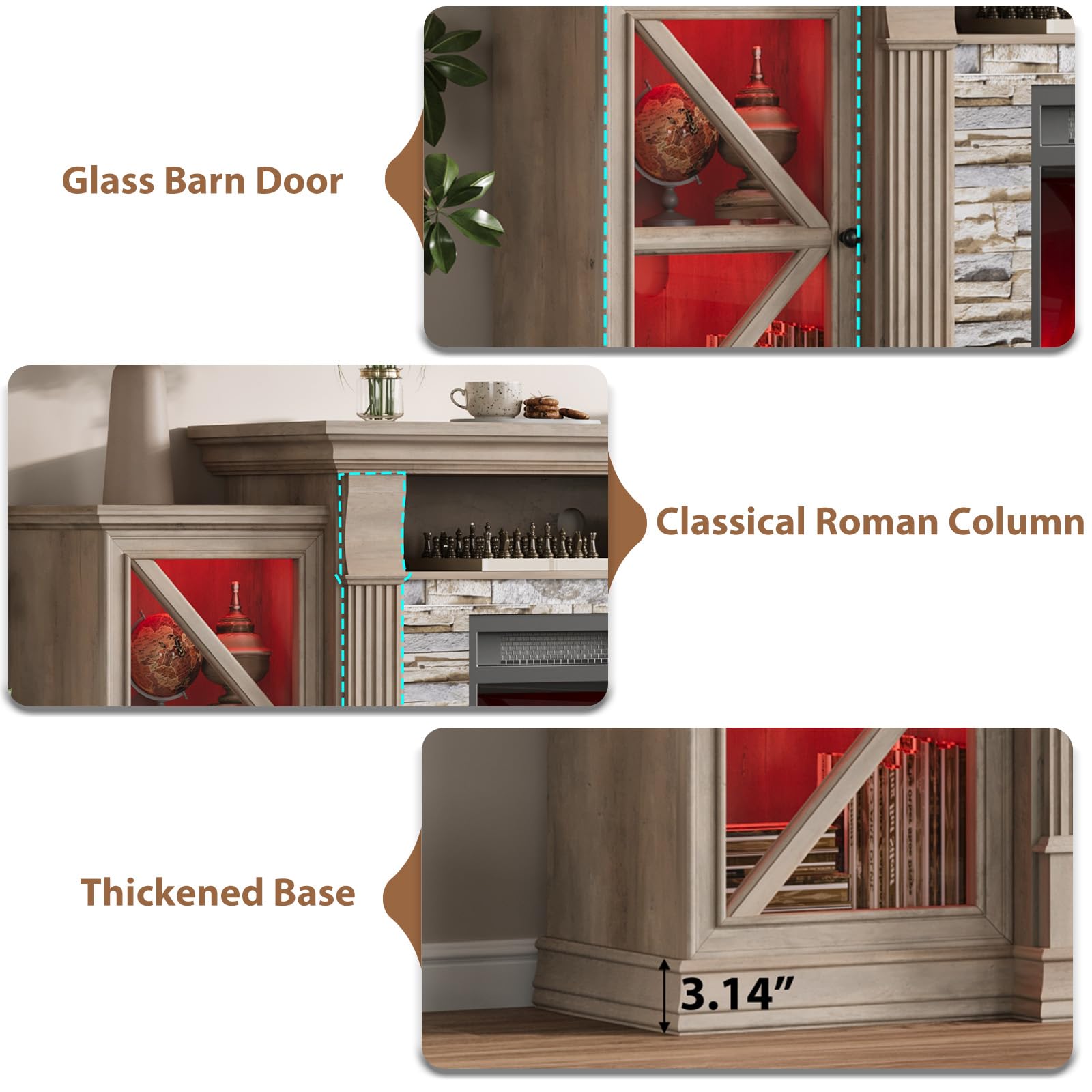 Electric Fireplace TV Stand 70" Farmhouse Entertainment Center