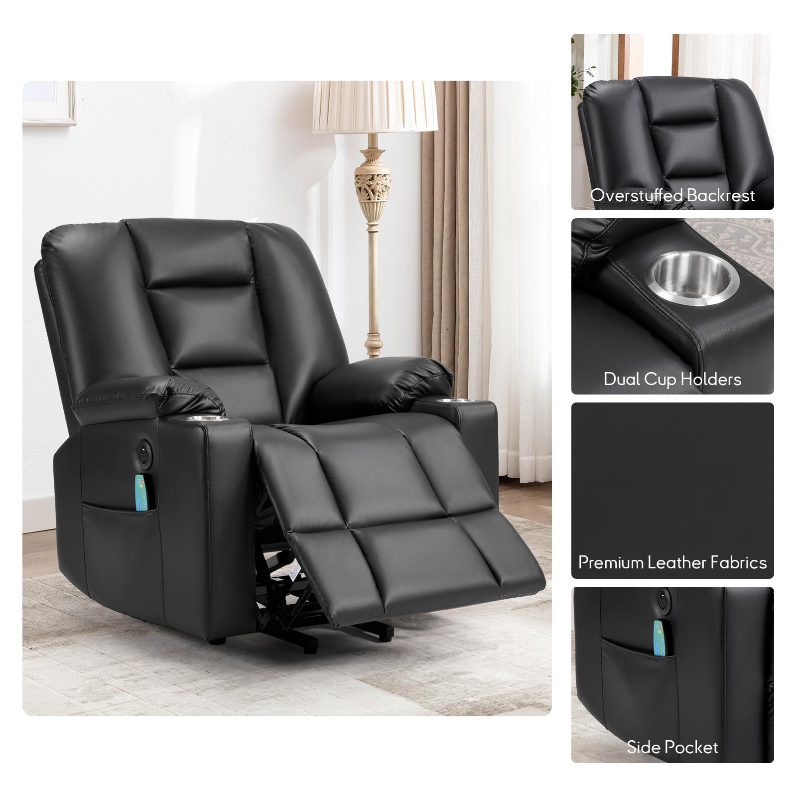 - Massage and Heating: Equipped with 8 massage points targeting shoulders, back, thighs, and legs for deep relaxation. Built-in heating function promotes blood circulation, ideal for cold weather or individuals prone to feeling cold