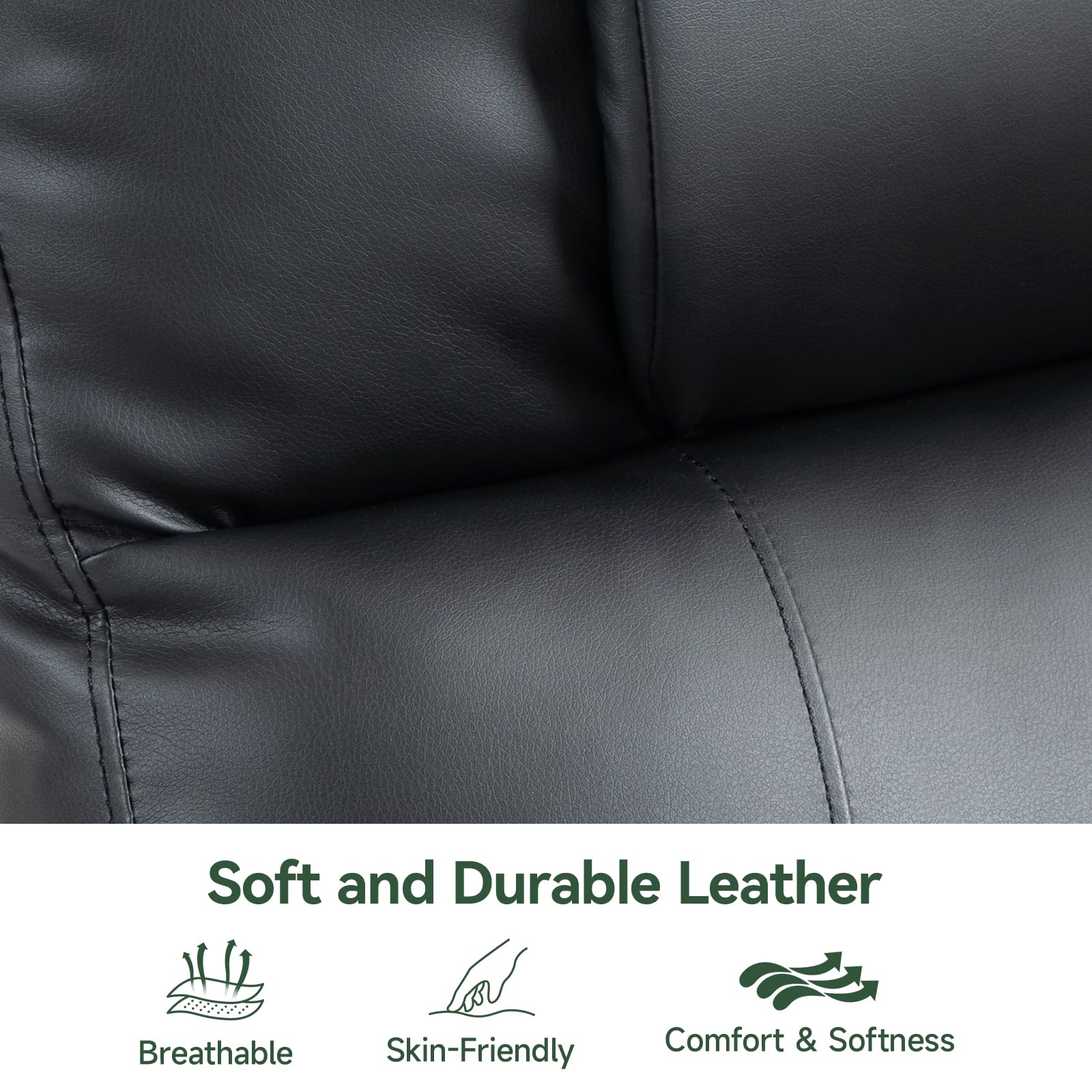 - Premium PU leather upholstery in classic black