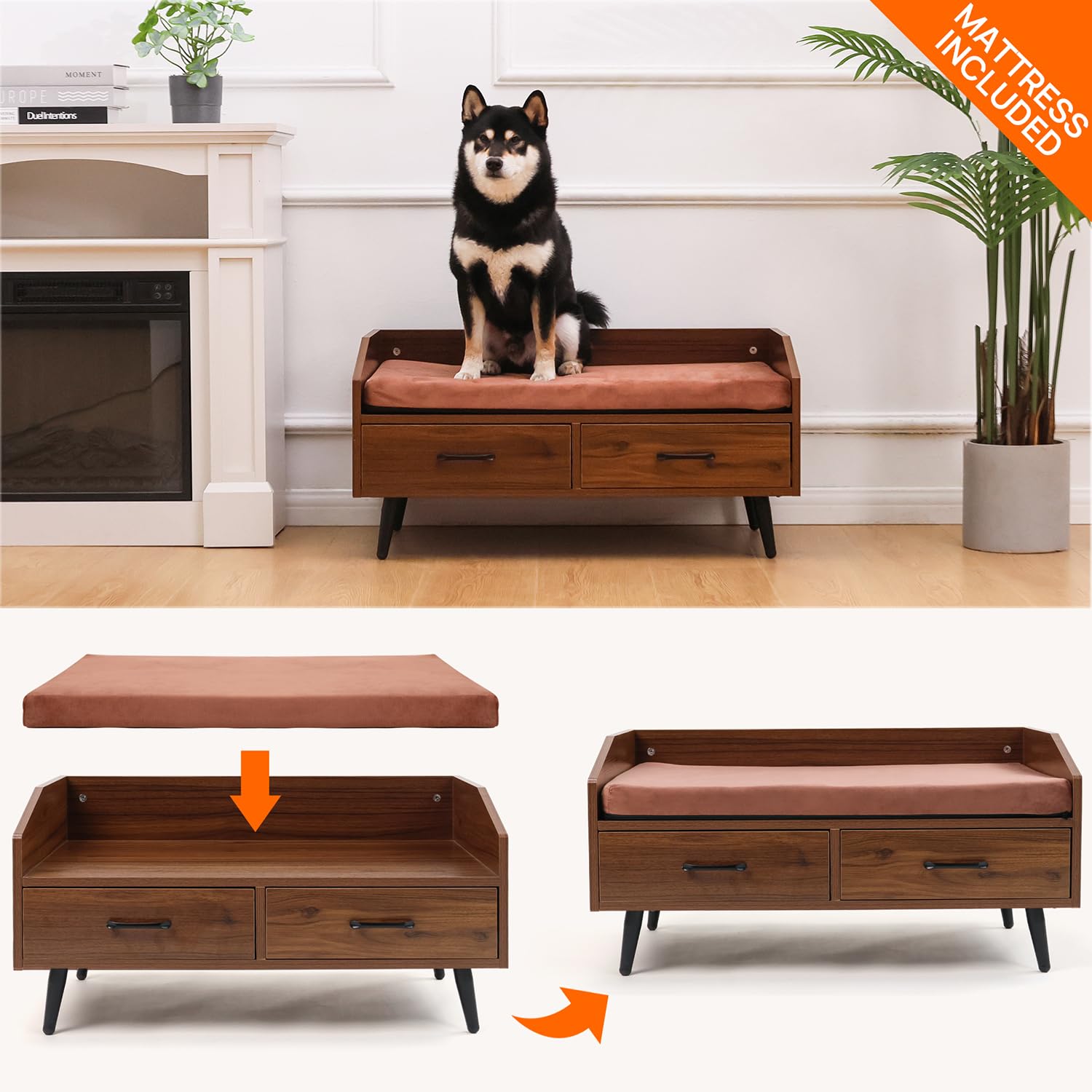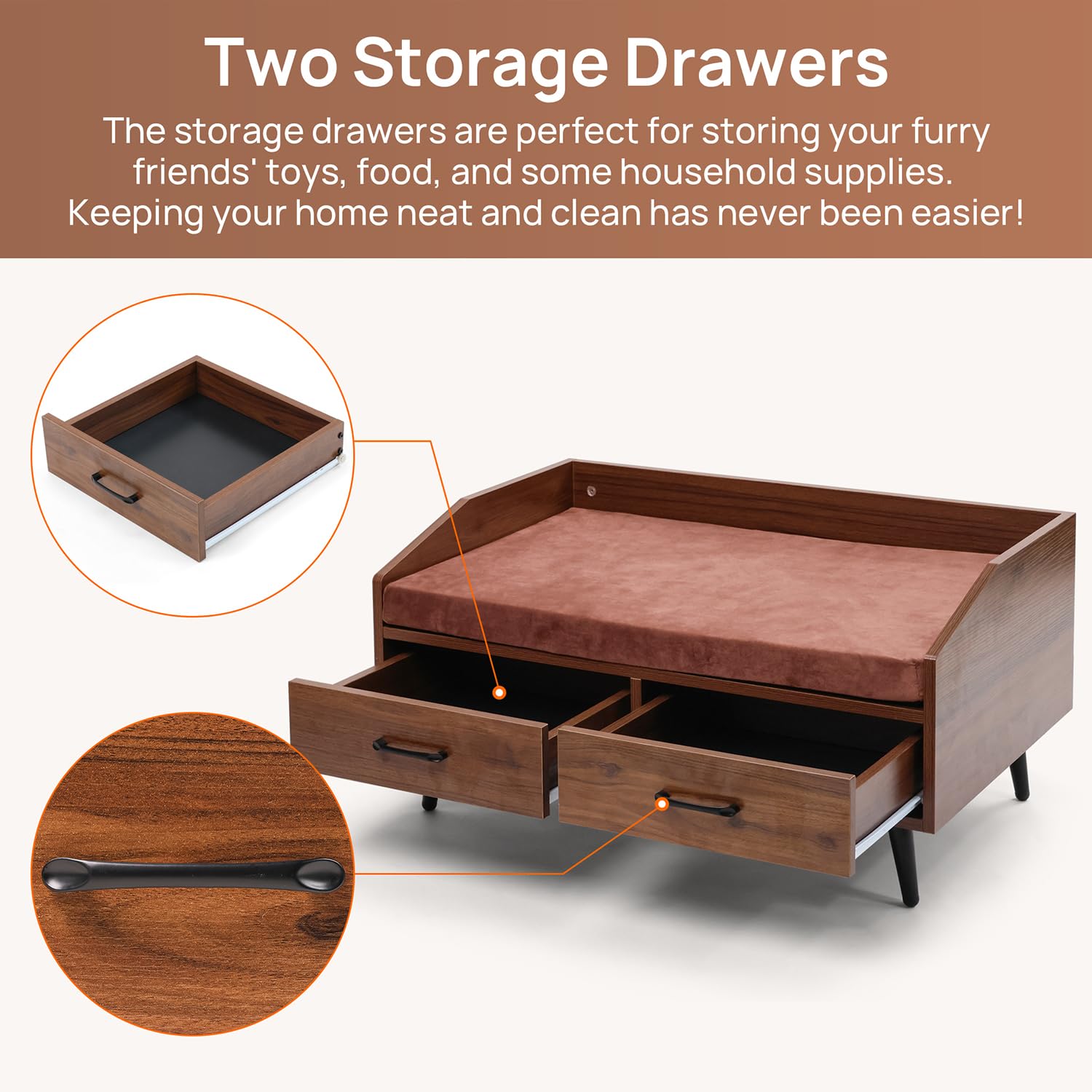 - Indoor pet furniture with elegant brown finish