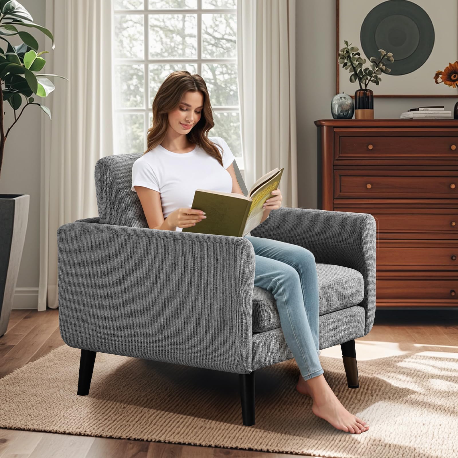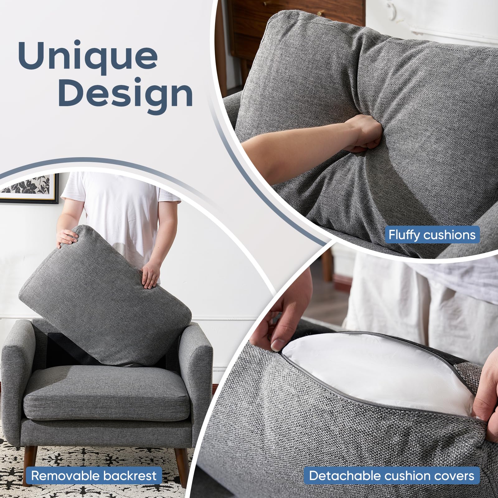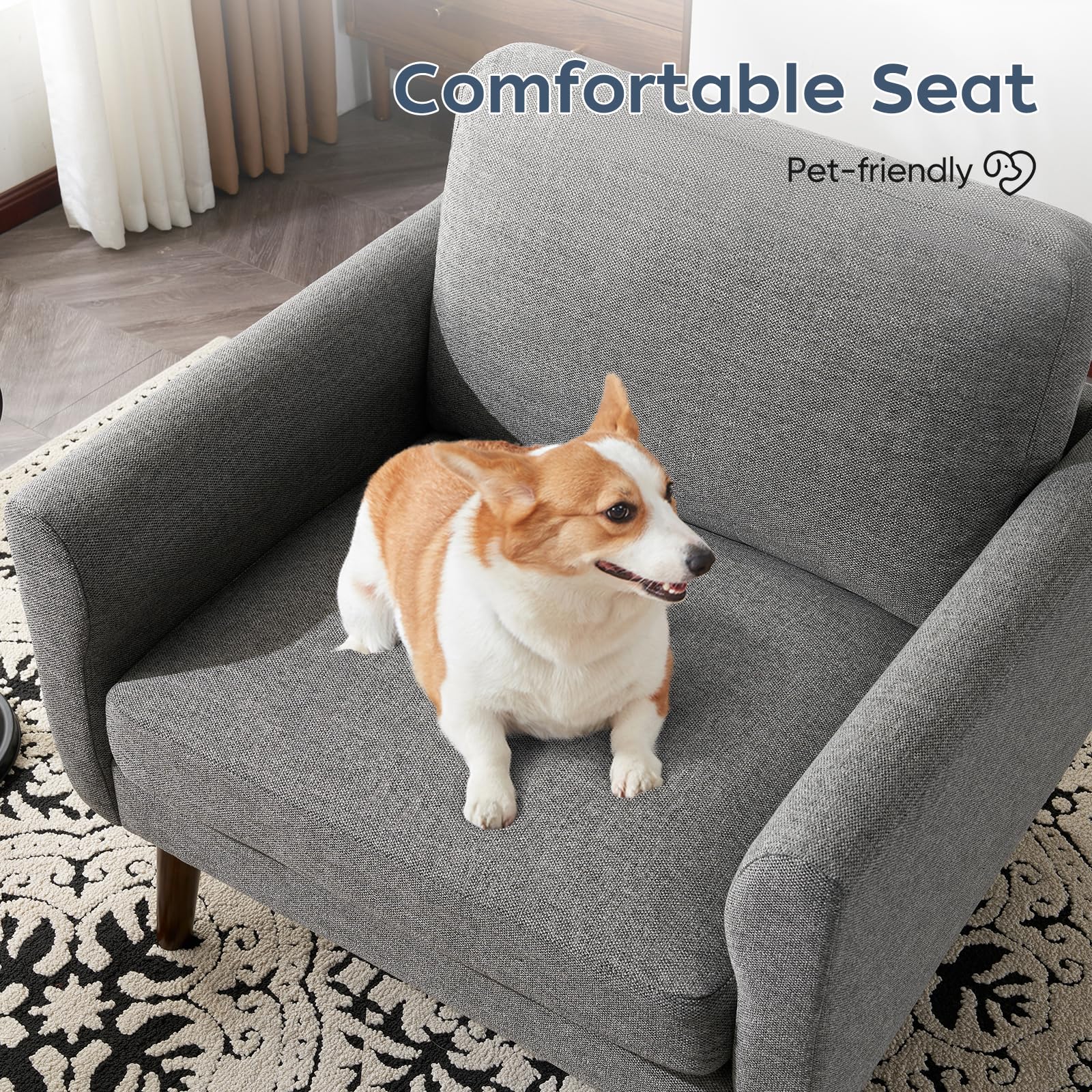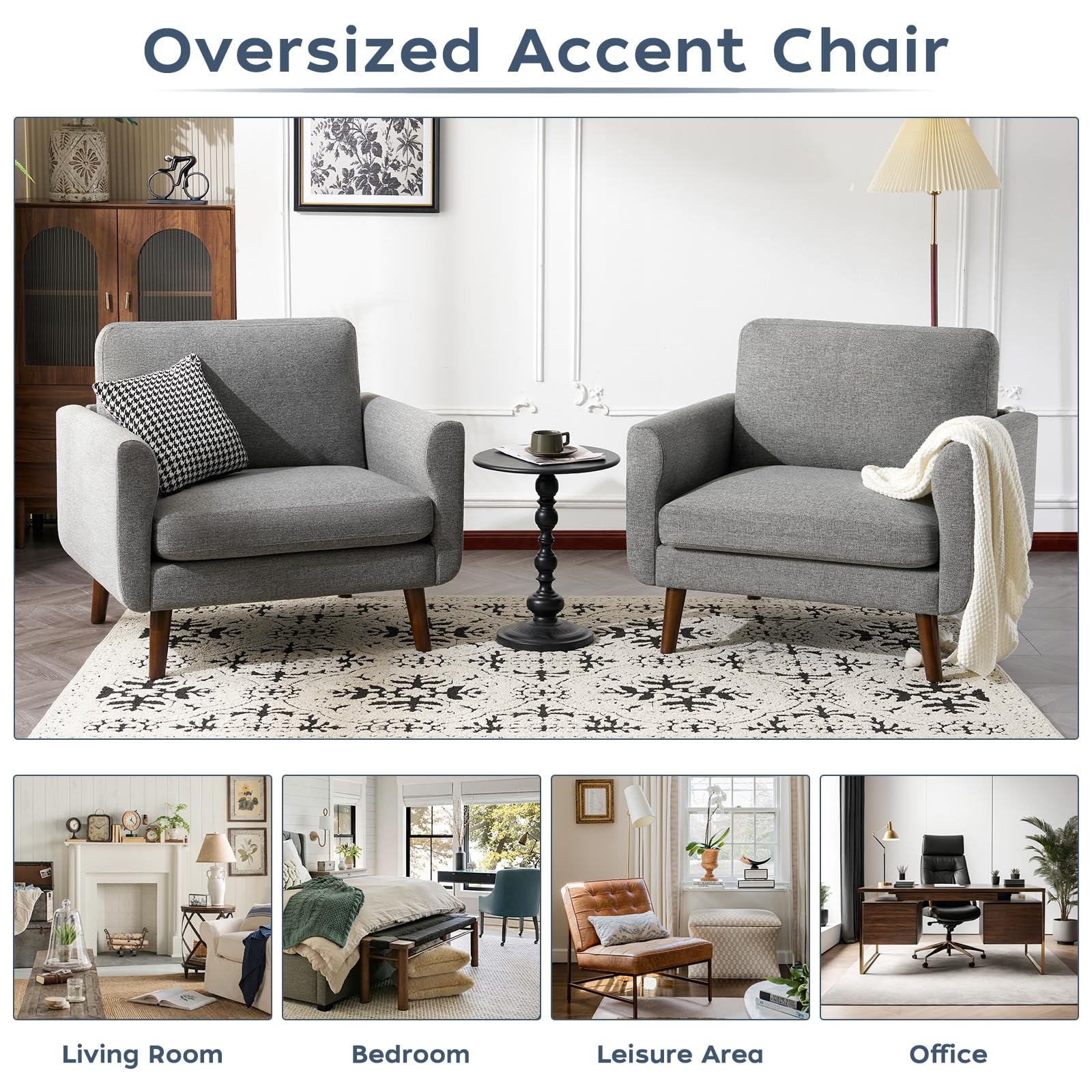 ELUCHANG Accent Chairs Set of 2, Oversized Mid Century Modern Arm Chair, Soft Linen Fabric Sofa Chairs Upholstered Comfy Chair for Living Room Bedroom Apartment (Grey)