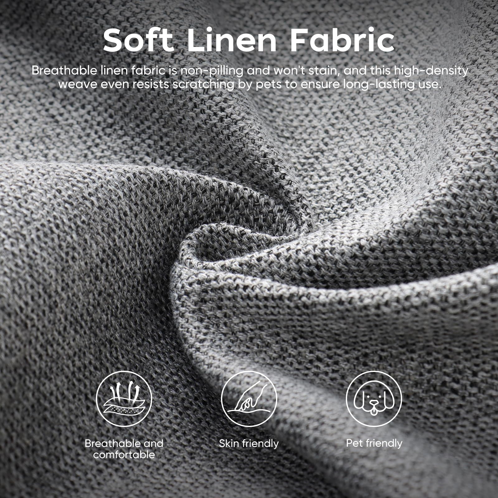 - đăPremium Linen FabricăThis modern accent chair is crafted with premium natural linen, it is soft and comfortable enough to touch,skin-friendly, durable and not easy to pilling. If your pet likes to claw the chair, please donât worry, the linen fabric is sturdy enough, so won't leave any marks.