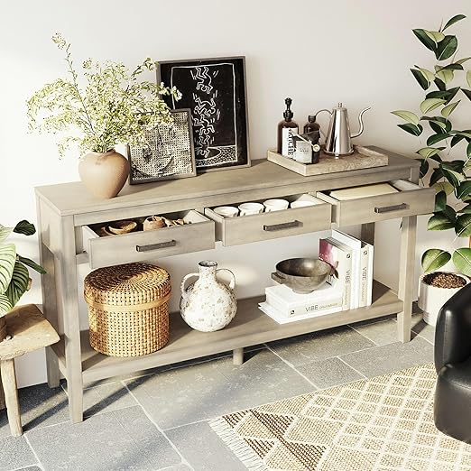 Ideal for entryways, hallways, living rooms, or behind sofas. The three drawers provide ample storage for keys, mail, and small accessories, while the open shelf is perfect for displaying framed photos, potted plants, or favorite books.