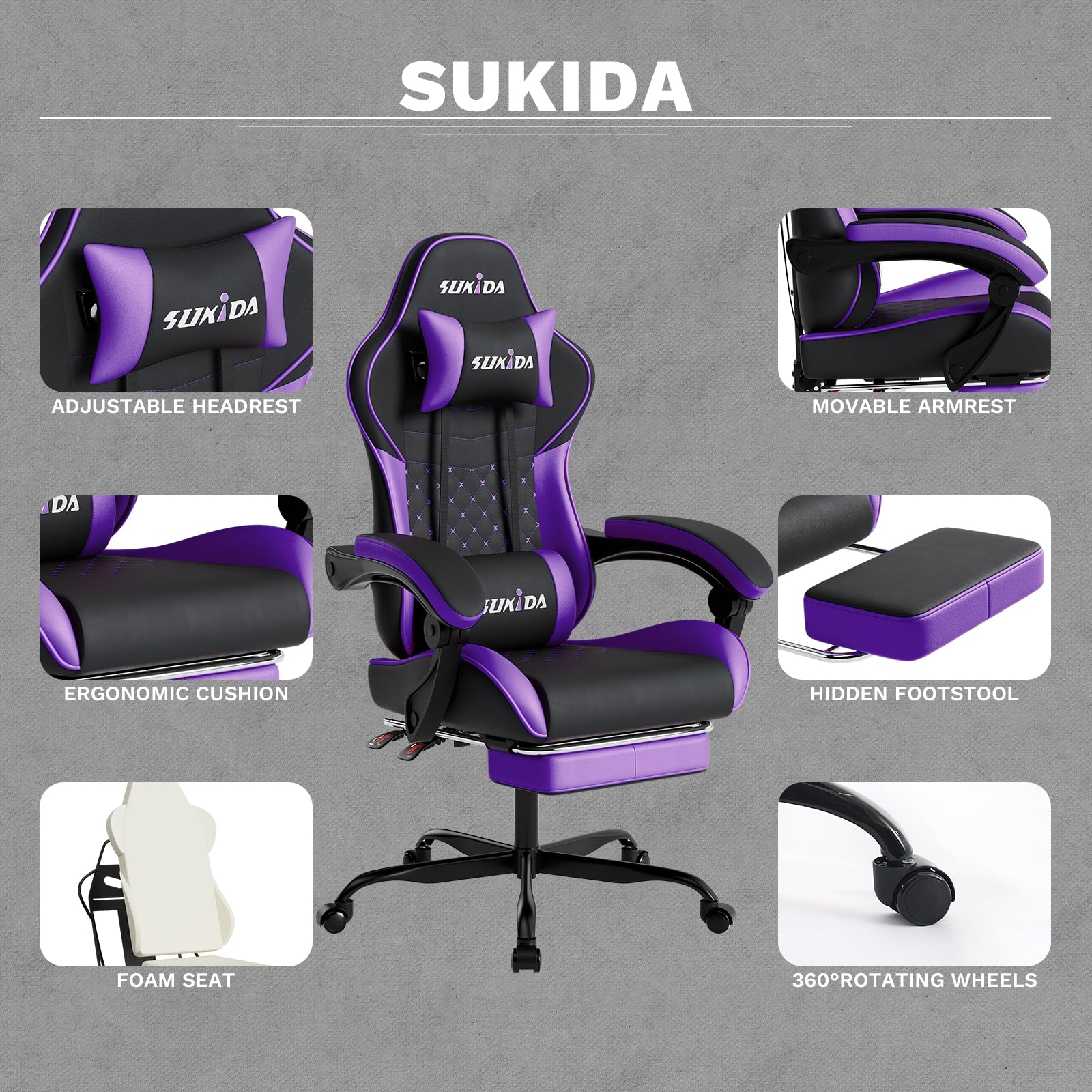 Experience ultimate comfort during extended gaming or work sessions with this ergonomic gaming chair featuring pocket spring cushioning and massage lumbar support.