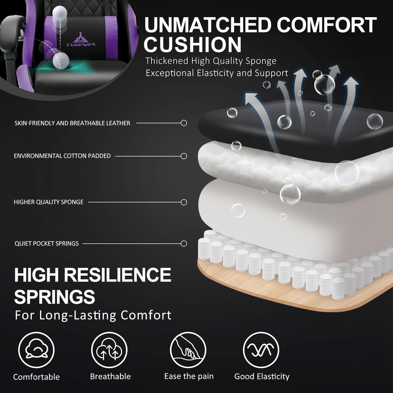 Experience ultimate comfort with this ergonomic gaming chair designed for extended gaming and work sessions. Featuring premium quilted faux leather, pocket spring cushioning, and comprehensive ergonomic support, this chair delivers exceptional comfort and durability.