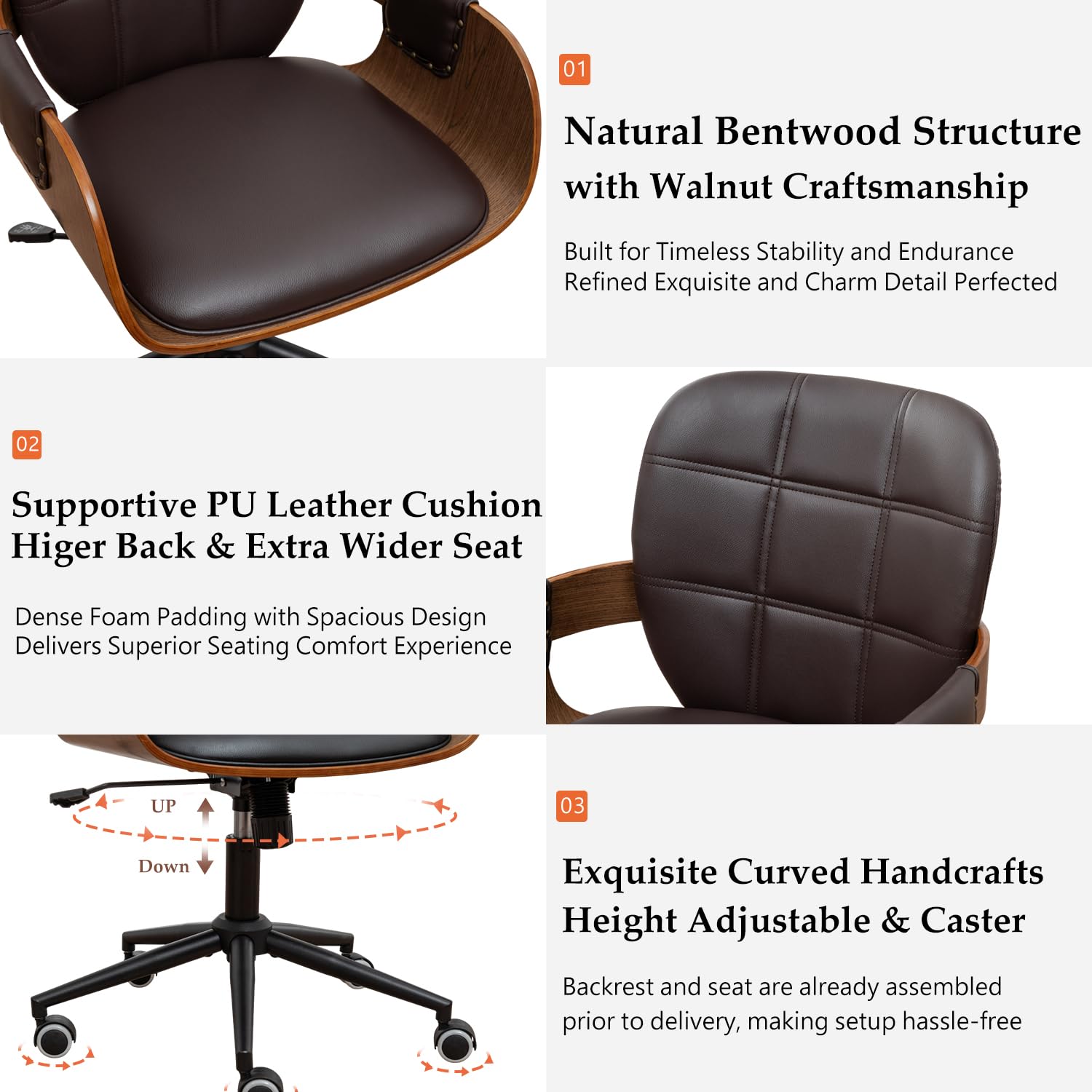 Experience exceptional comfort and style with this ergonomic office chair, expertly crafted from sturdy bentwood with premium faux leather upholstery. Designed for home offices, executive spaces, and conference rooms, this chair combines contemporary sophistication with reliable functionality.