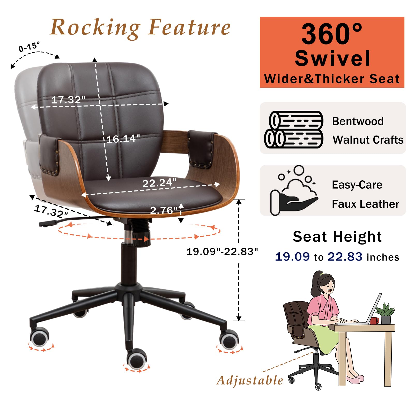 - 360-Degree Swivel & Rocking Function: Smooth rolling caster wheels allow effortless movement without dragging, while the rocking function provides relaxing comfort during long work sessions