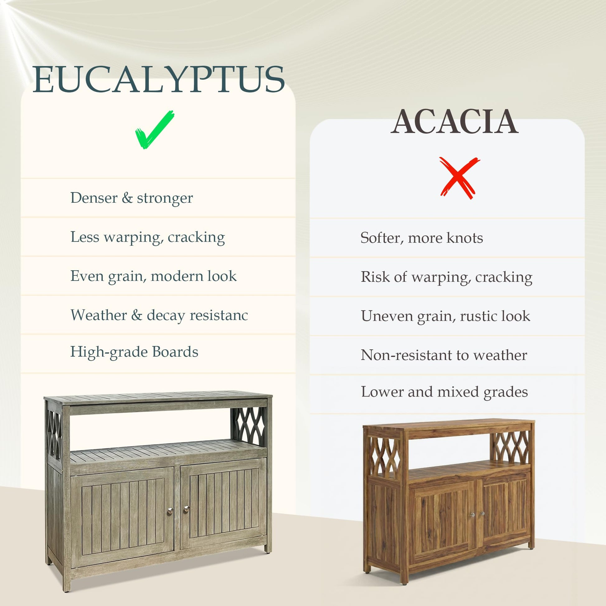 - Solid eucalyptus wood construction ensures long-lasting durability