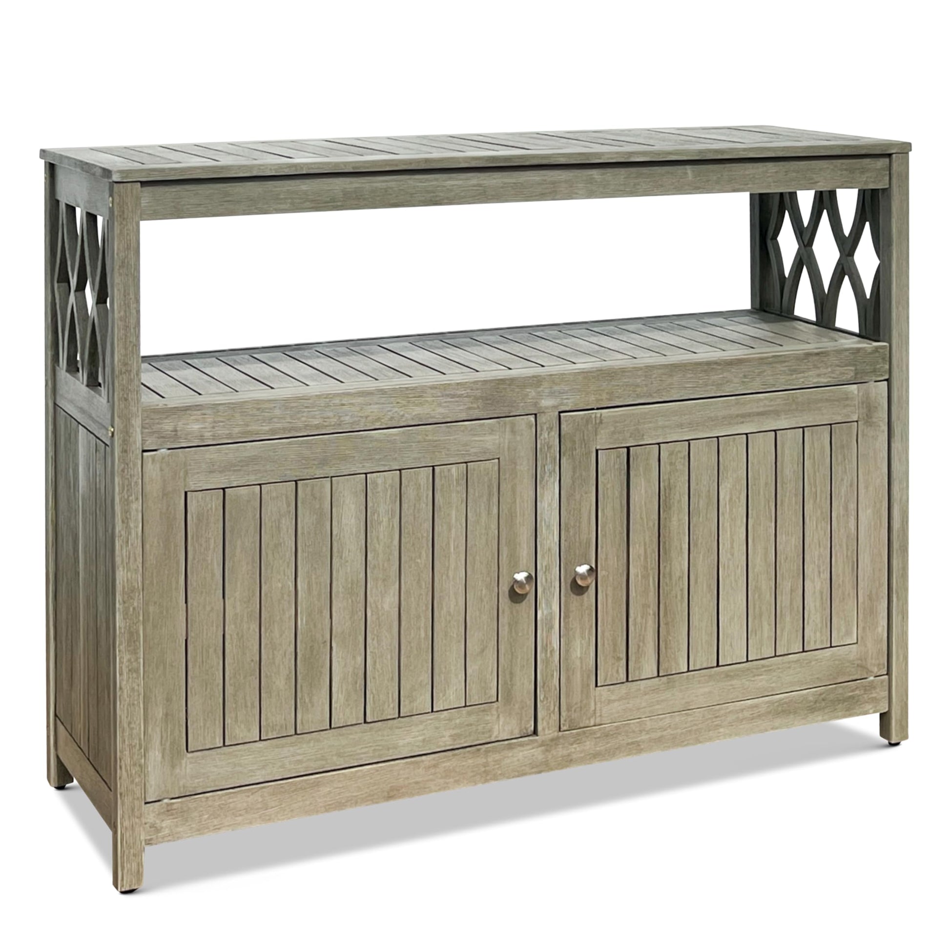 This outdoor sideboard table combines functionality with weather-resistant design, perfect for your patio, deck, or outdoor entertaining space. Crafted from durable eucalyptus wood with a beautiful driftwood gray finish, this buffet cabinet provides ample storage while withstanding the elements.