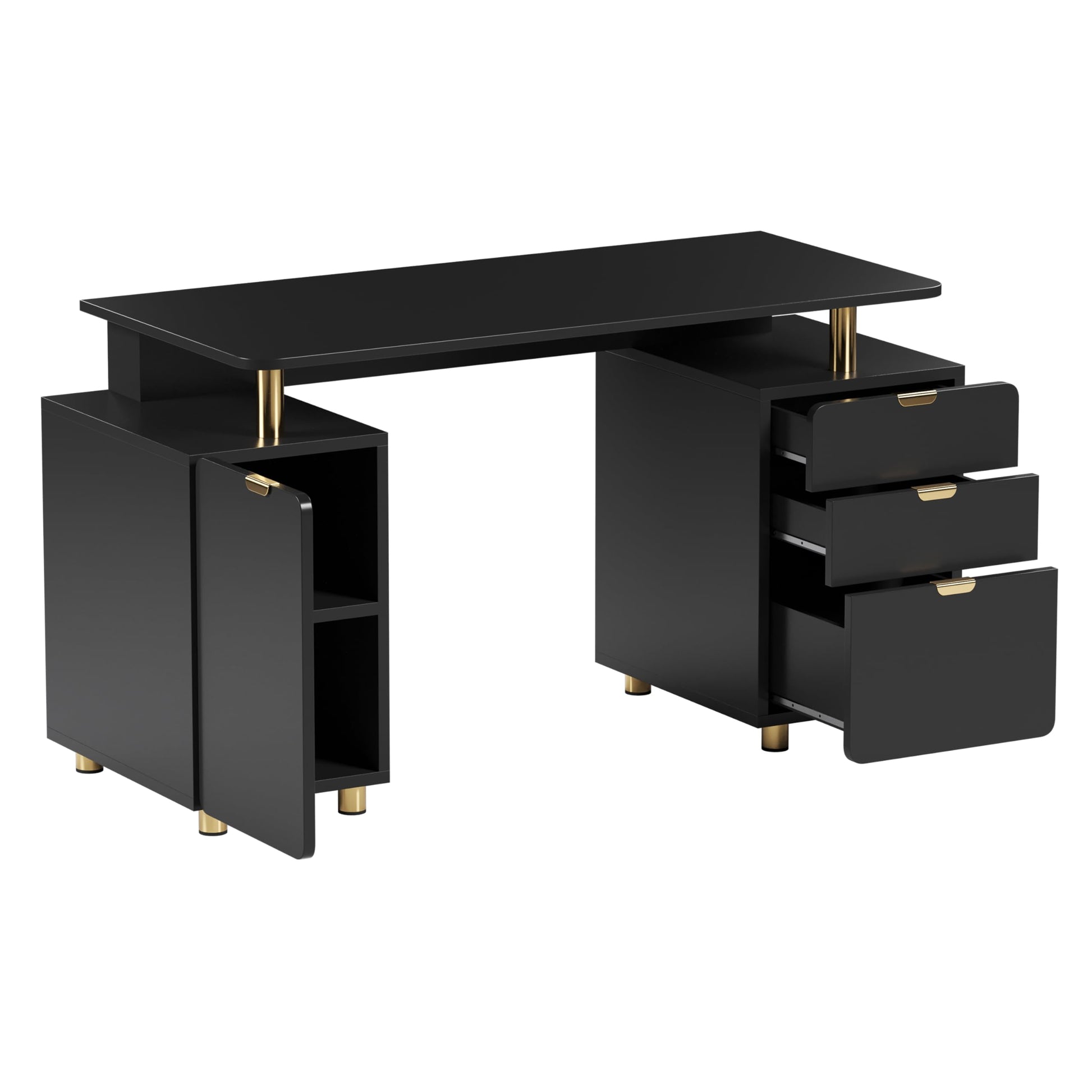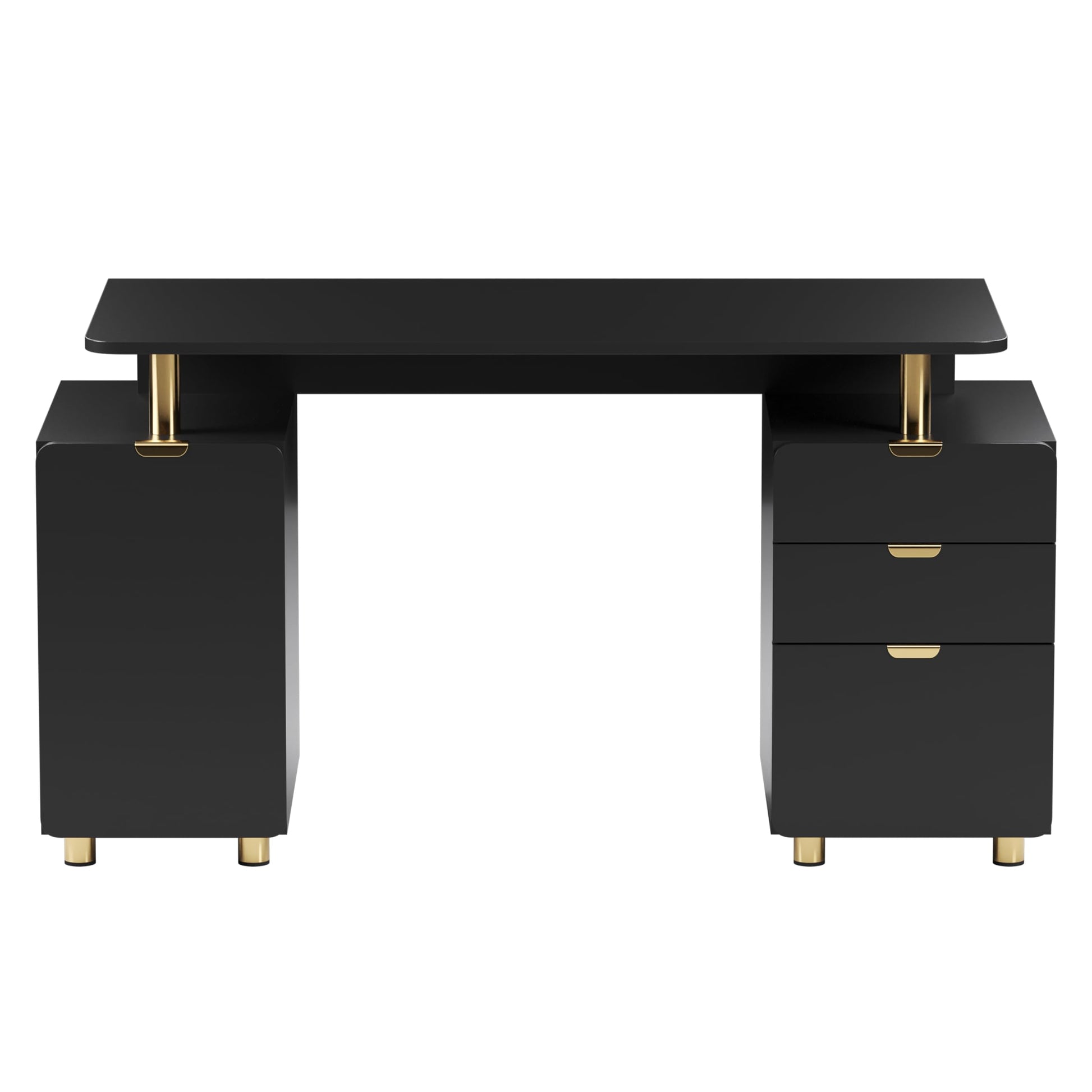 - Stylish Gold Accents: Modern gold-finished handles, legs, and support bars add a refined elegance, making this desk a statement piece in any office