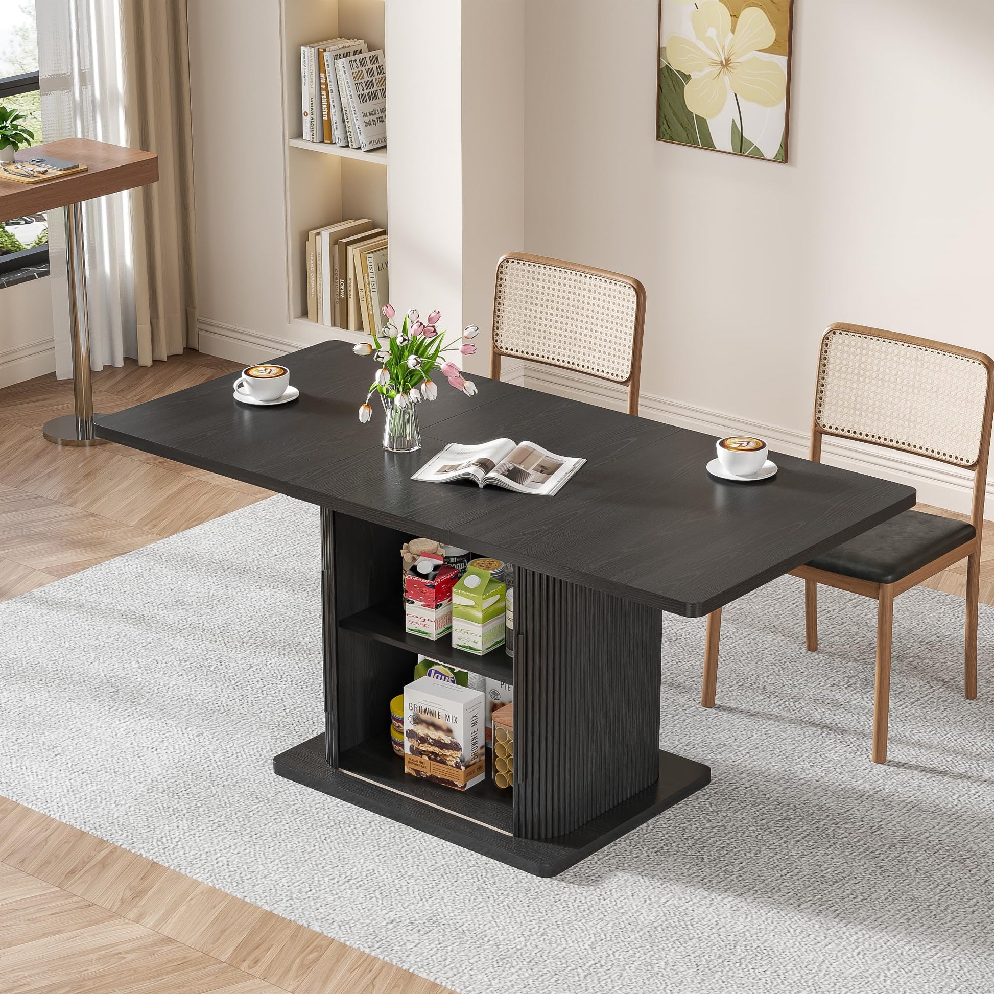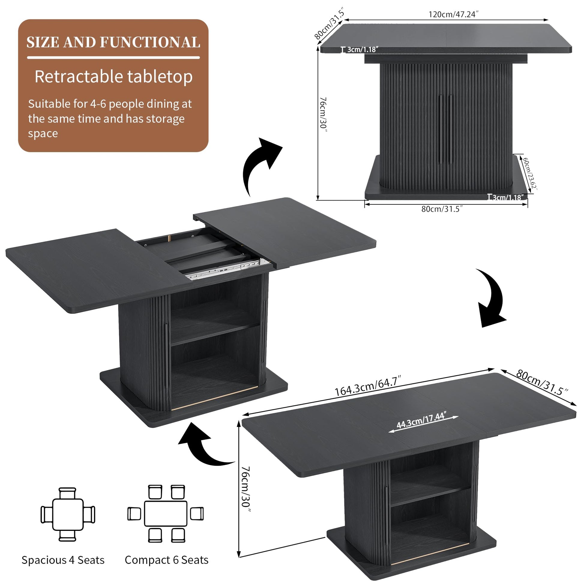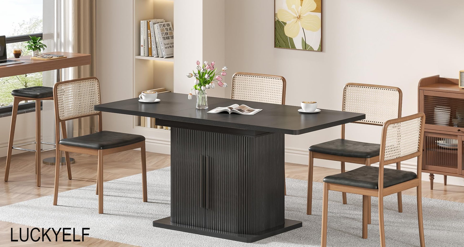 - Expandable Design: Ingenious slide-and-lock mechanism with smooth, silent glides effortlessly extends the table to accommodate up to 6 diners. Removable leaves store neatly in the base compartment.