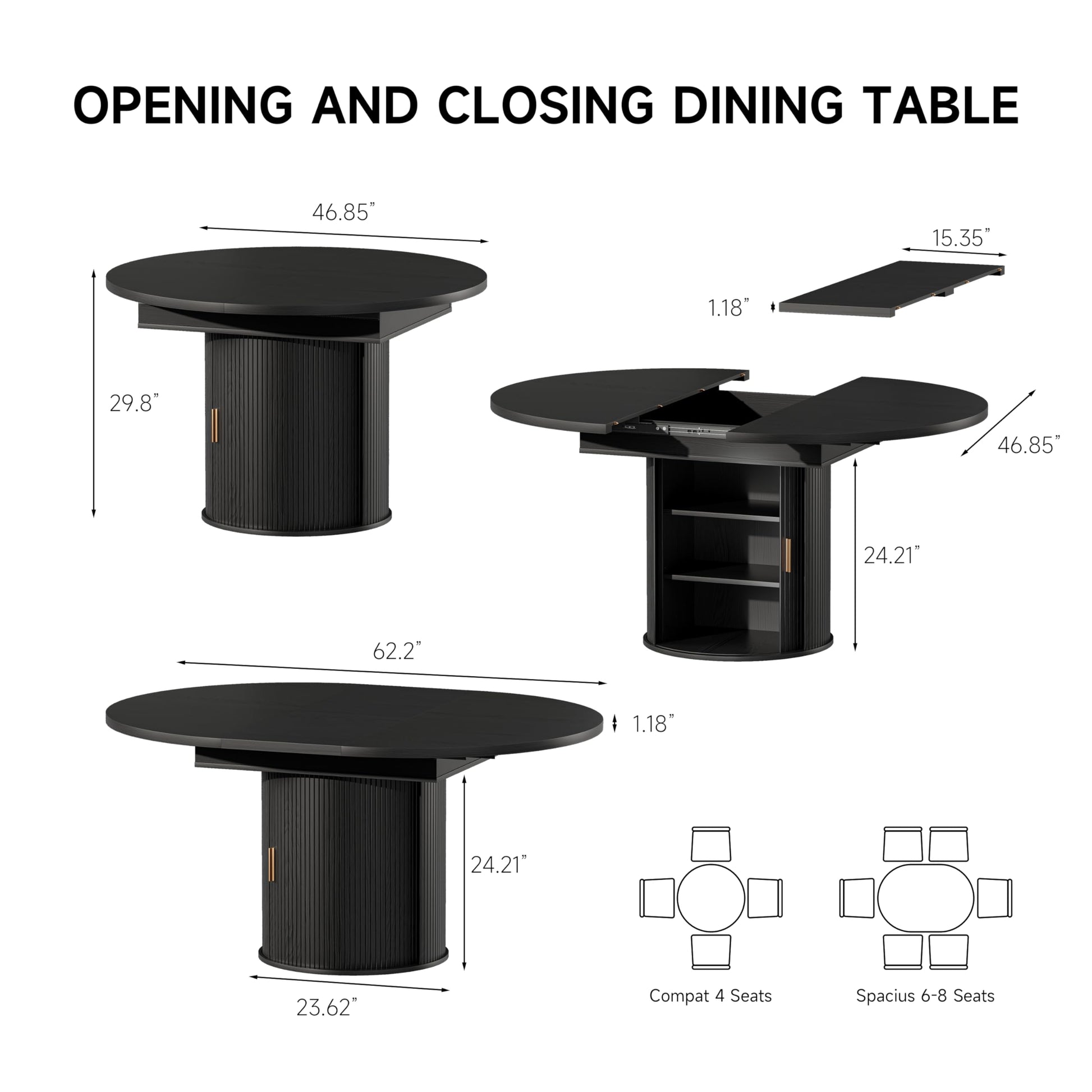 - Expandable Round-to-Oval Design: Transforms from 46.85" round to 62.2" oval, accommodating 4-8 people with ease