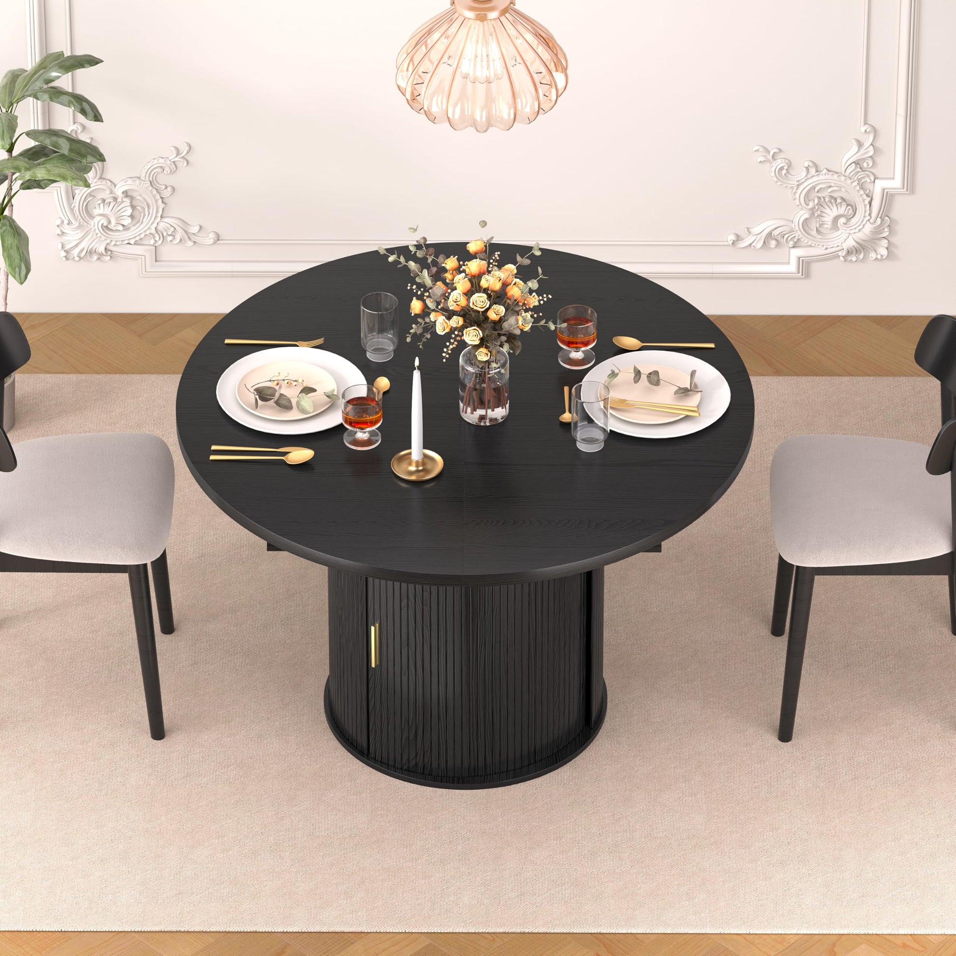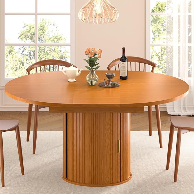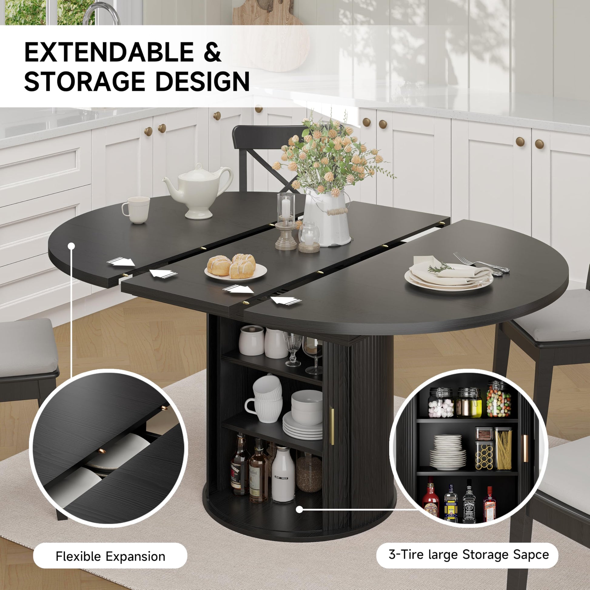 Extendable Round Dining Table with Storage