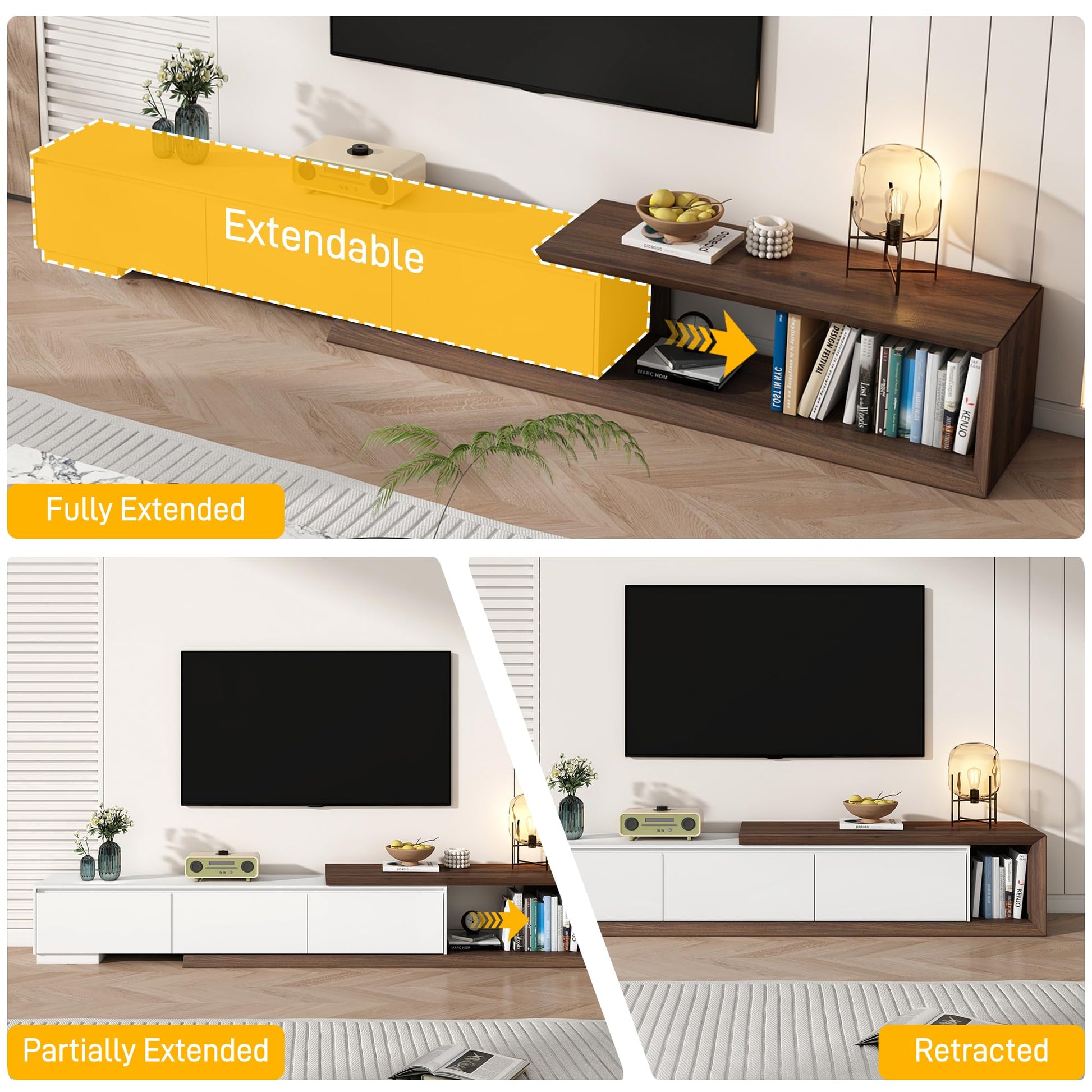 Extendable TV Stand with 3 Drawers - Modern Entertainment Center 82-107.3 Inch
