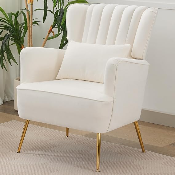 Fabric Accent Arm Chair Set of 2 with Pillow & Golden Legs