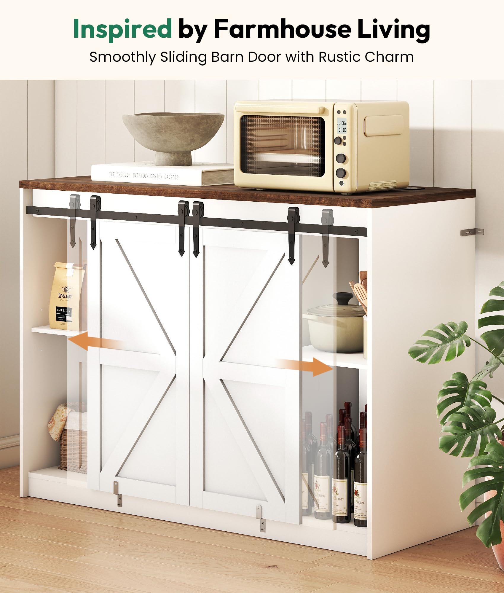 Farmhouse Coffee Bar Cabinet with Fridge Space