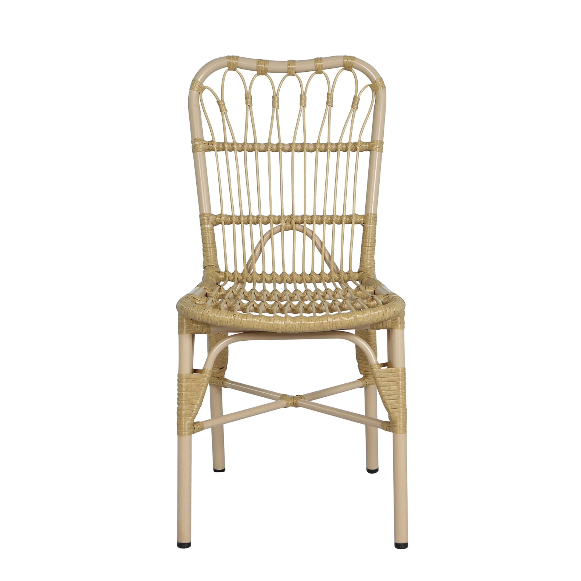 Add rustic charm and relaxed elegance to your outdoor space with this set of 2 farmhouse-style patio dining chairs. Featuring an armless silhouette and hand-woven faux rattan details, these outdoor dining chairs are perfect for patios, balconies, gardens, or dining rooms.