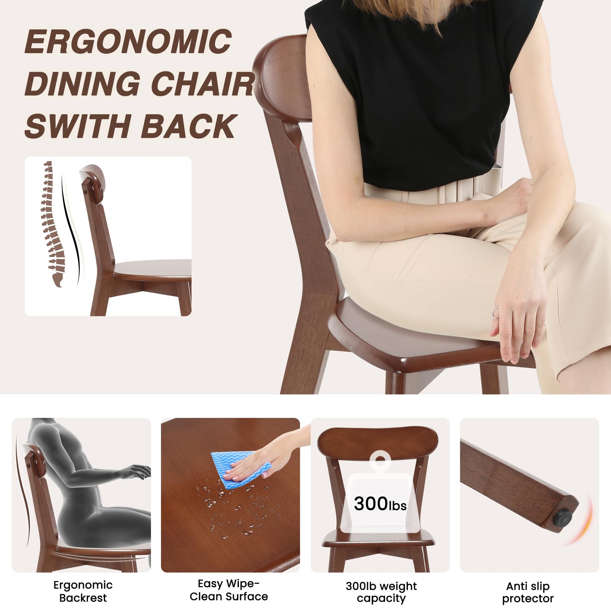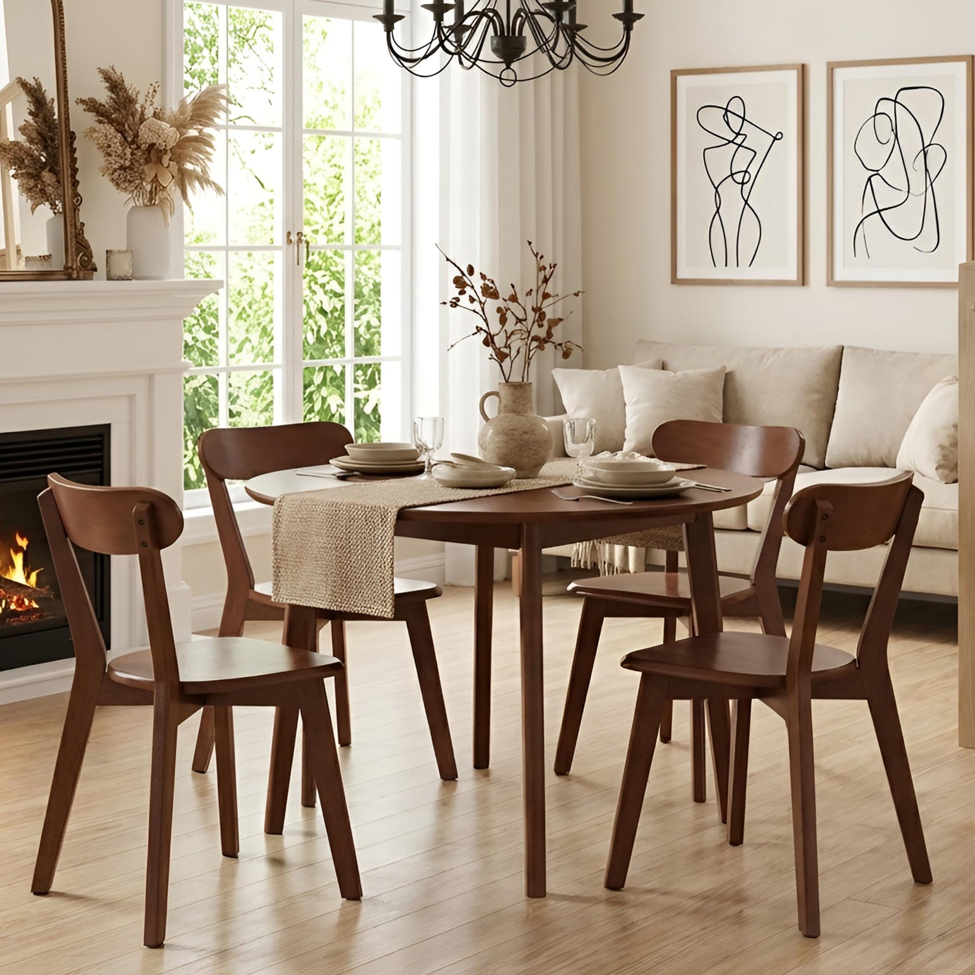 Elevate your dining space with this set of four mid-century modern dining chairs featuring a distinctive open curved back design. Crafted from solid wood with a rich walnut finish, these armless chairs blend farmhouse charm with contemporary style.
