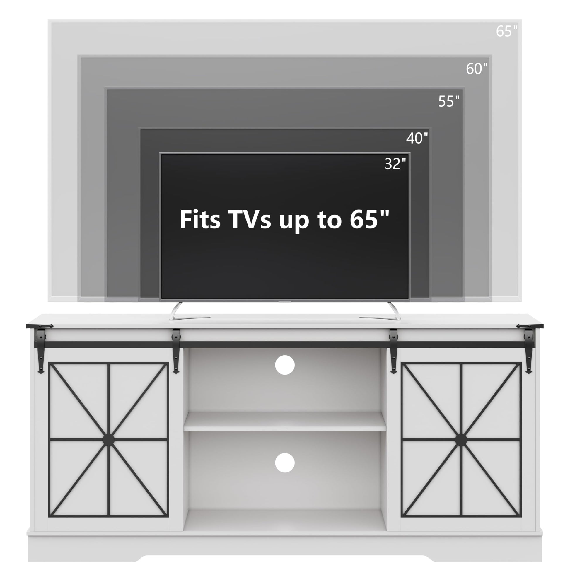 Transform your living space with this elegant farmhouse TV stand that combines rustic charm with modern functionality. Featuring sliding barn doors and ample storage, this media console is perfect for TVs up to 65 inches.