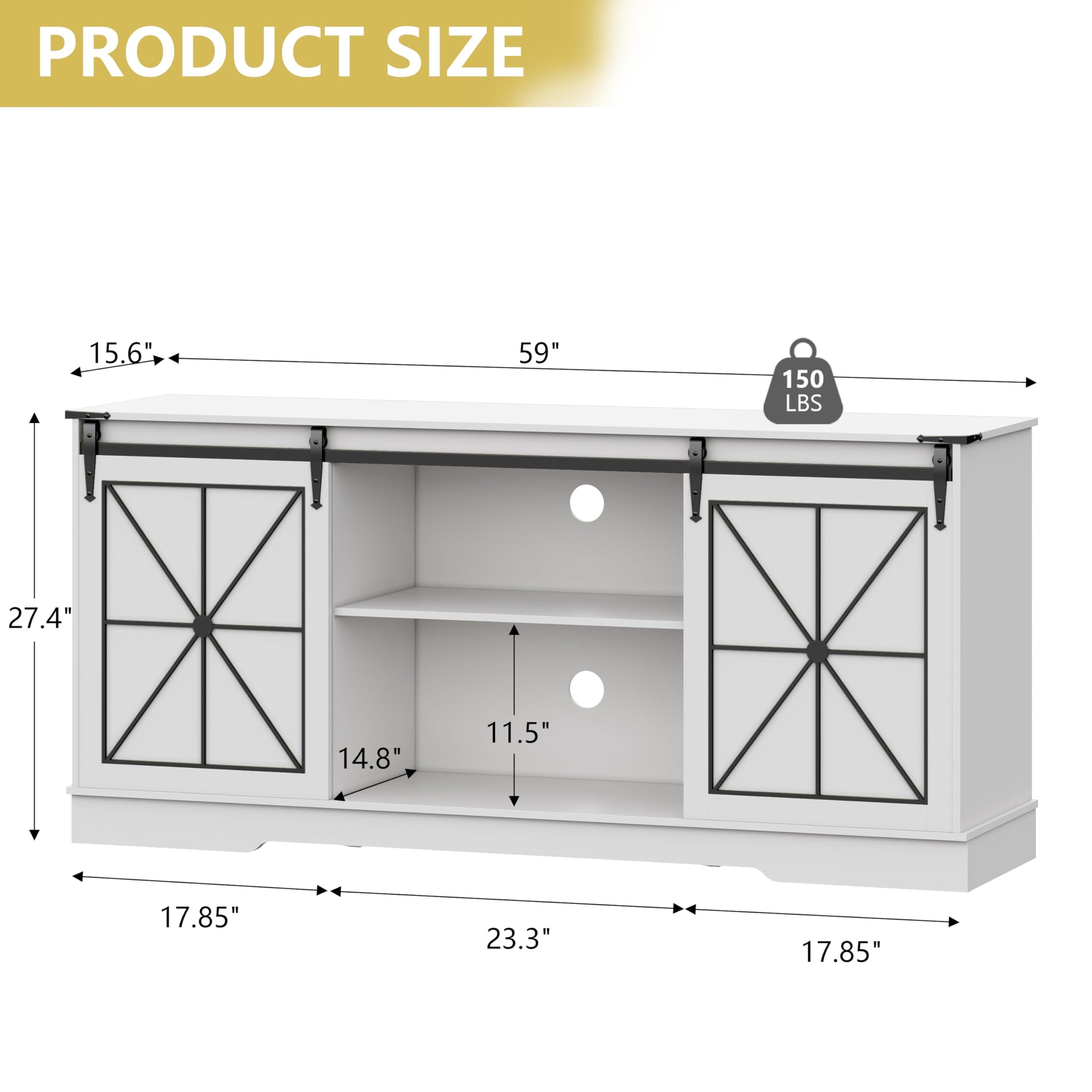Farmhouse TV Stand with Sliding Barn Doors - 59 Inch Media Console