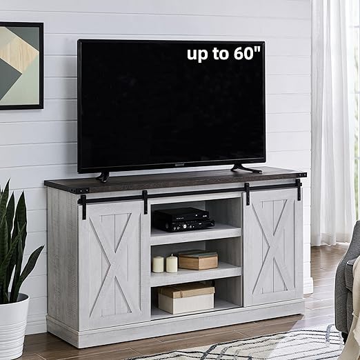 Transform your living space with this rustic farmhouse TV stand featuring authentic sliding barn doors and premium engineered wood construction. Designed to accommodate flat and curved screen TVs up to 60 inches, this entertainment center combines style with practical storage solutions.