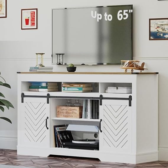 Farmhouse TV Stand with Sliding Barn Door for TVs up to 65 Inch