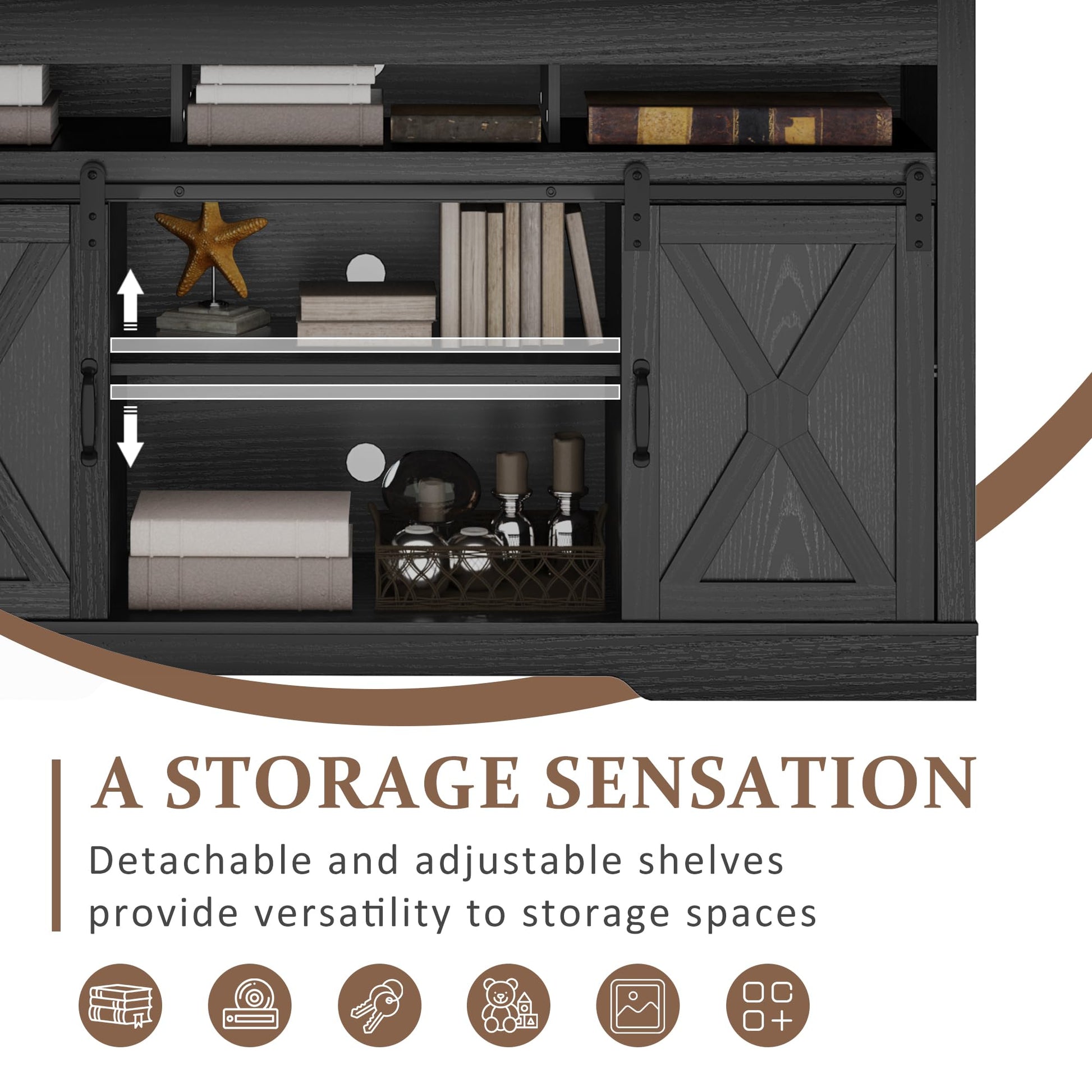 The wood construction ensures durability and stability, while the black finish complements a variety of interior design styles. The sliding barn door mechanism offers easy access to storage compartments, keeping your media devices, gaming consoles, and accessories organized and out of sight.