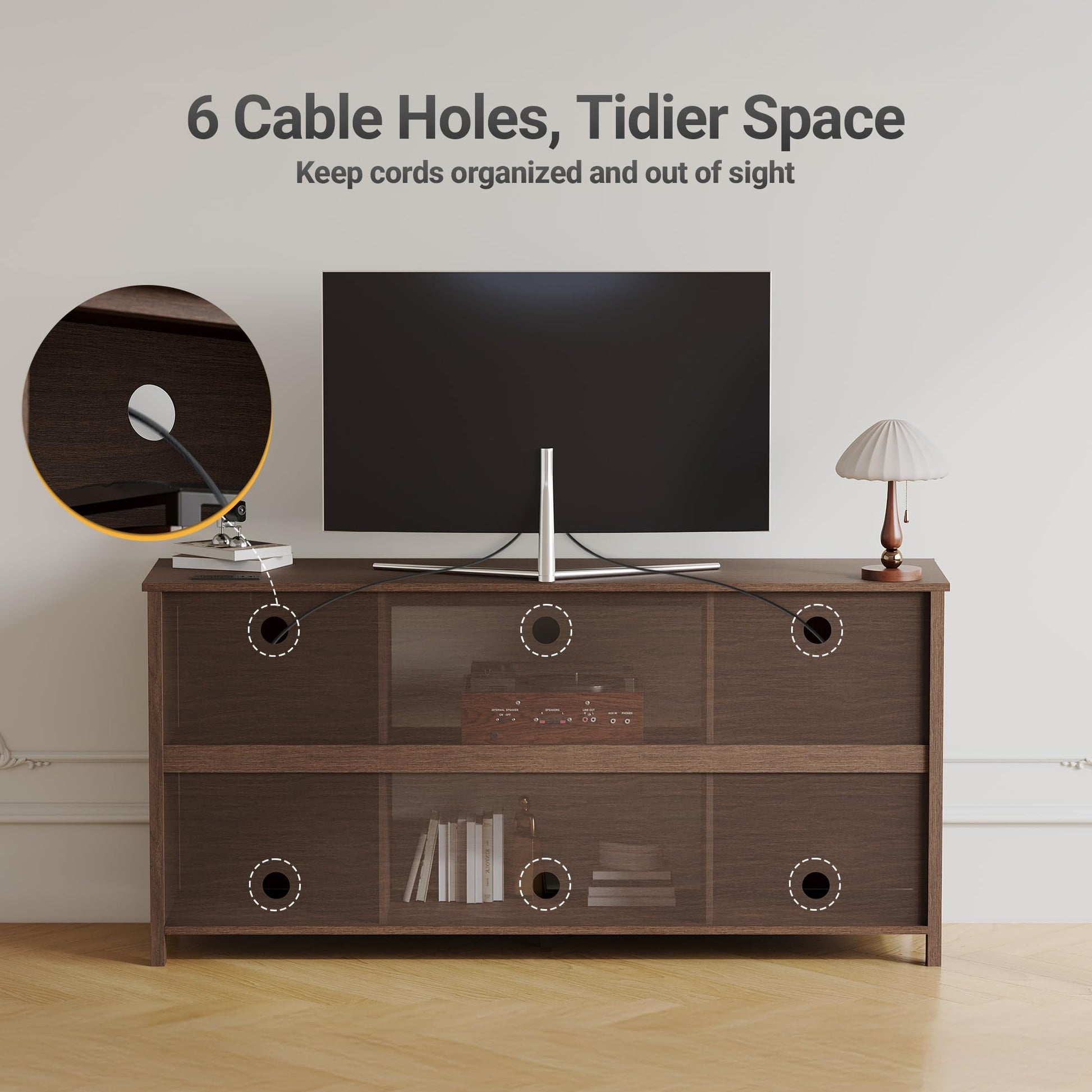 - Cable Management: Round cable hole on back panel keeps cords organized and hidden
