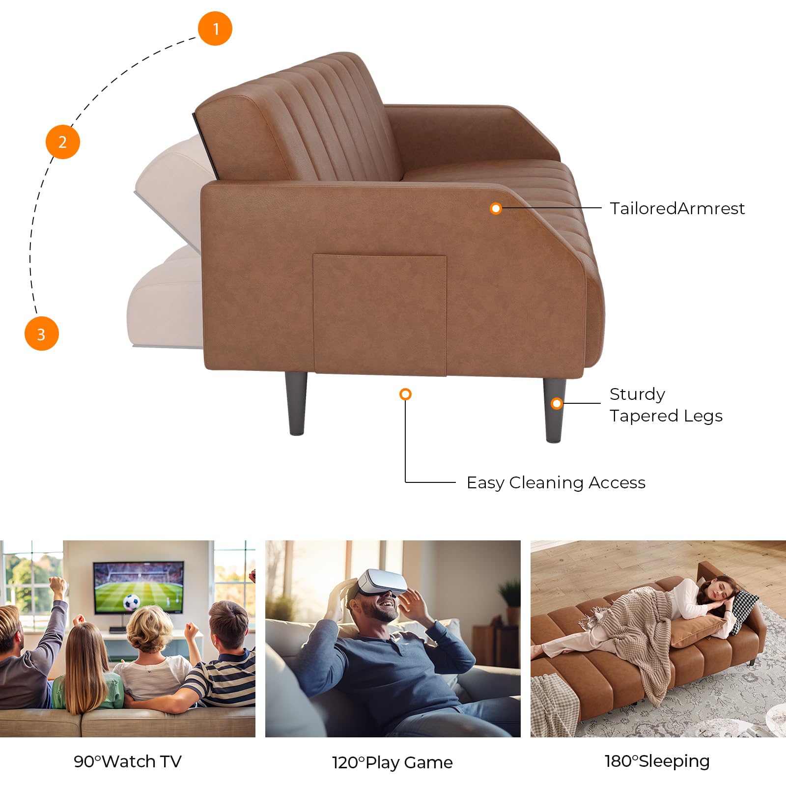 Perfect for living rooms, guest rooms, bedrooms, or apartments. The three adjustable positions allow you to customize your seating or sleeping experience. Side pockets on both armrests keep remotes, phones, tablets, and magazines within easy reach.