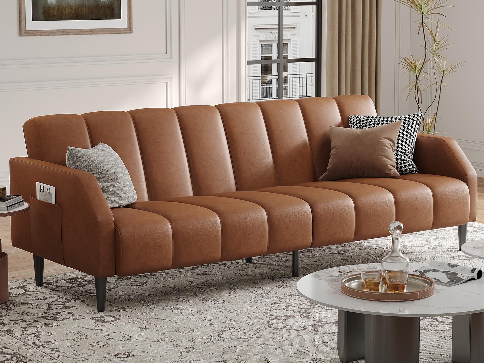 This versatile convertible futon sofa bed seamlessly transforms between sofa, bed, and recliner configurations to meet your living space needs. Featuring three adjustable split folding backrest settings, this multi-functional piece comfortably seats 2-3 people and converts into a spacious sleeping surface.