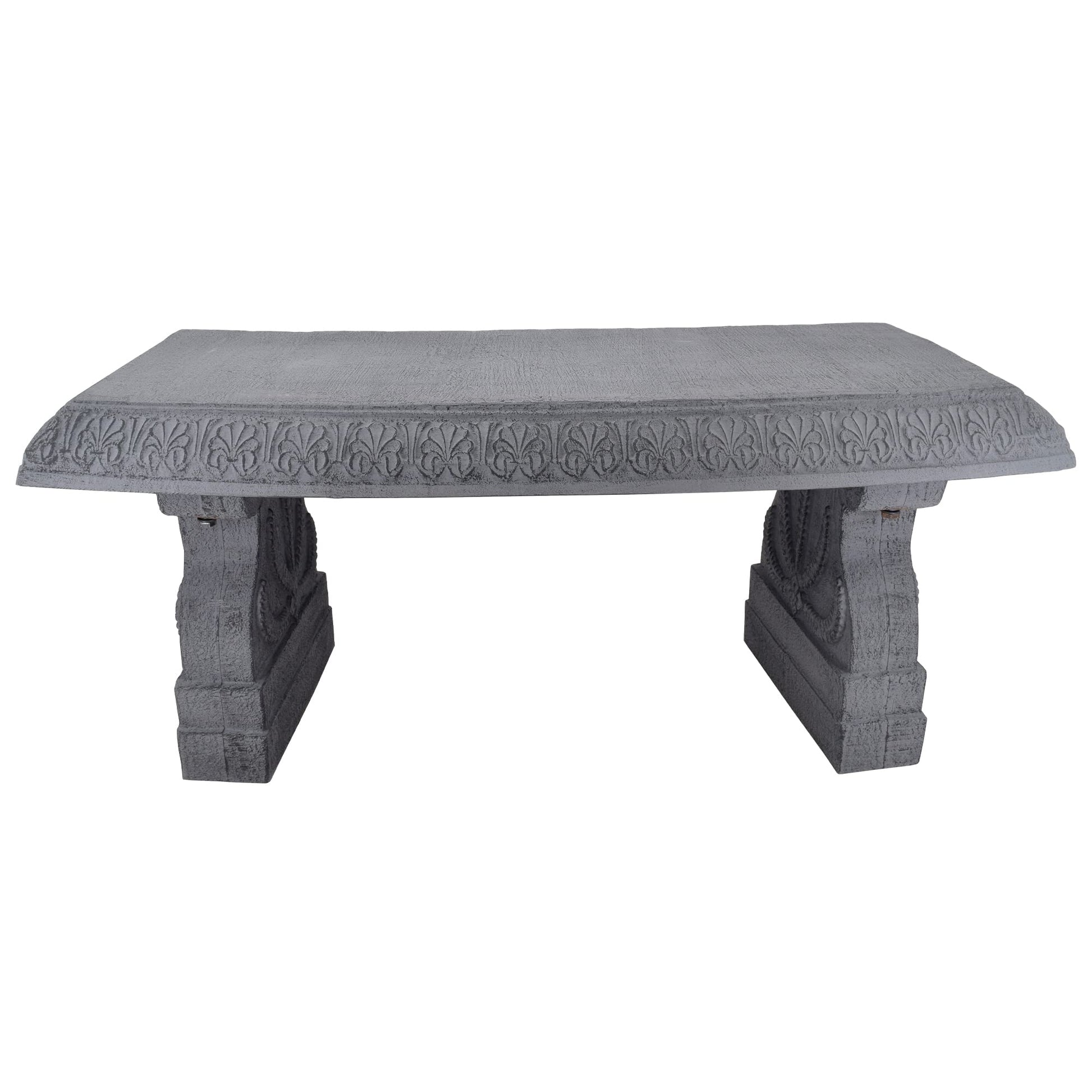 Lightweight and durable fiberclay bench perfect for your garden, porch, patio, deck, or poolside area. Features ornate floral engravings with a brushed finish that resembles natural patina, combining vintage charm with modern durability.