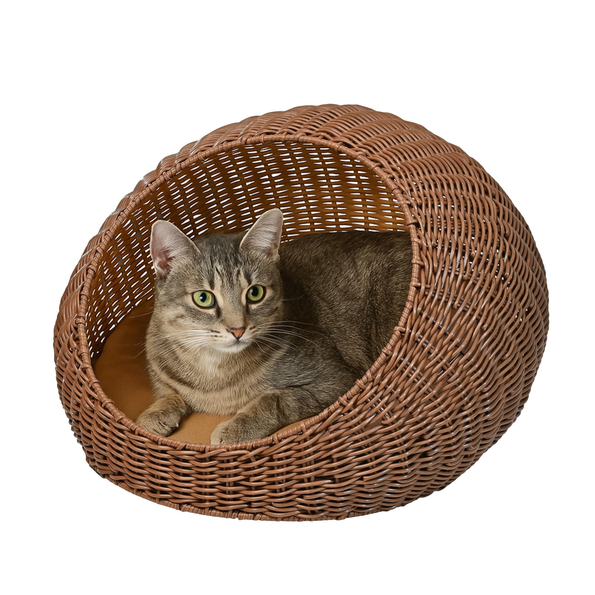Elevate your pet's comfort with this modern circular pet bed featuring durable faux wicker construction and a plush, machine-washable cushion. Designed for indoor cats and small dogs, this bed combines contemporary style with practical functionality.