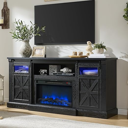 | Features | Electric Fireplace, LED Lighting, Sliding Barn Door |