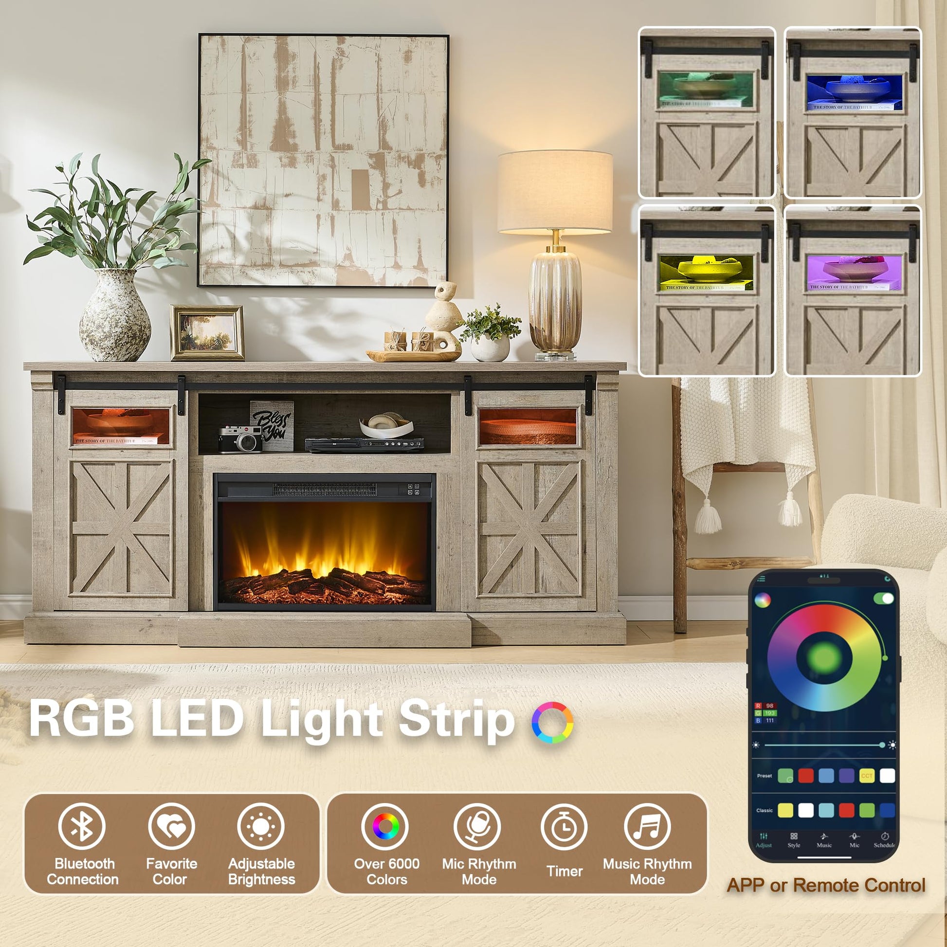Fireplace TV Stand with Electric Fireplace and Sliding Barn Door