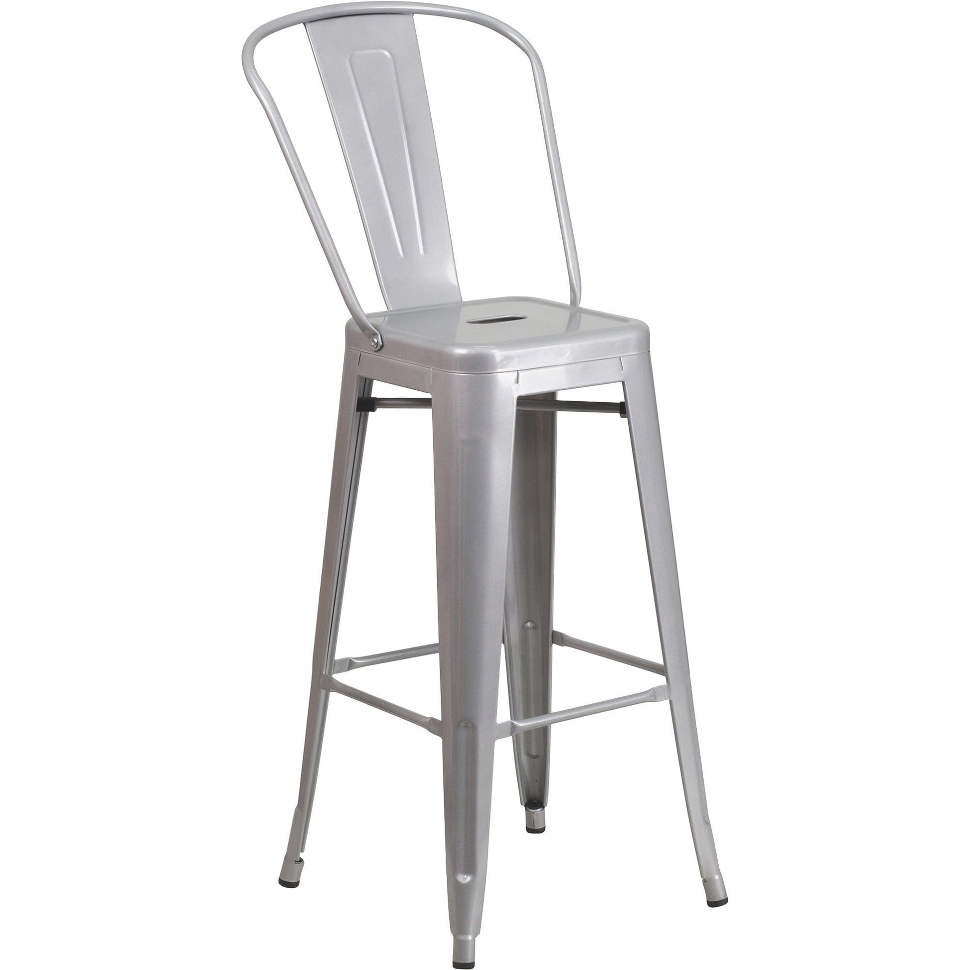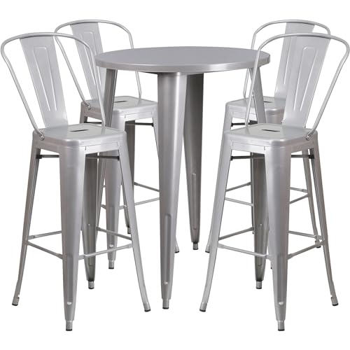 Flash Furniture Callum Commercial Grade 30" Round Silver Metal Indoor-Outdoor Bar Table Set with 4 Cafe Stools