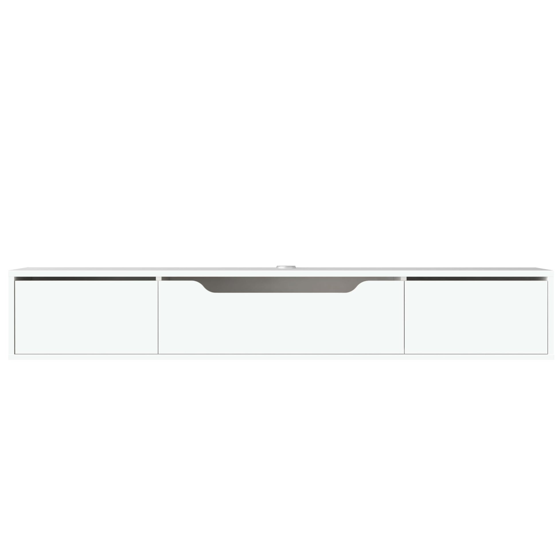 The hidden storage compartments keep cables, remotes, and media devices organized and out of sight, maintaining a clutter-free entertainment area. Wall-mounted installation frees up valuable floor space and makes cleaning effortless.