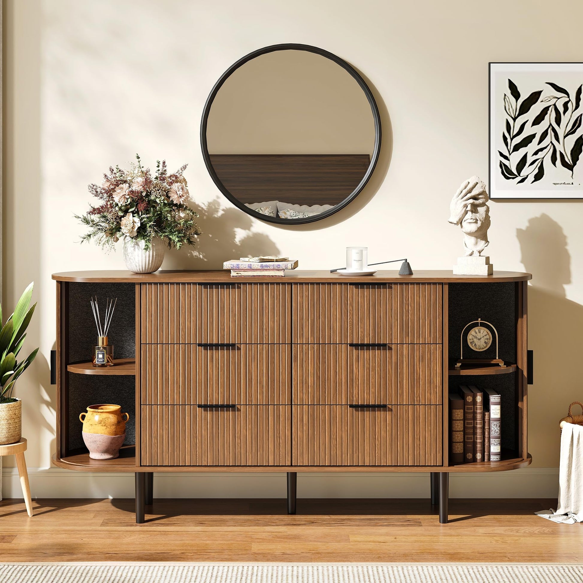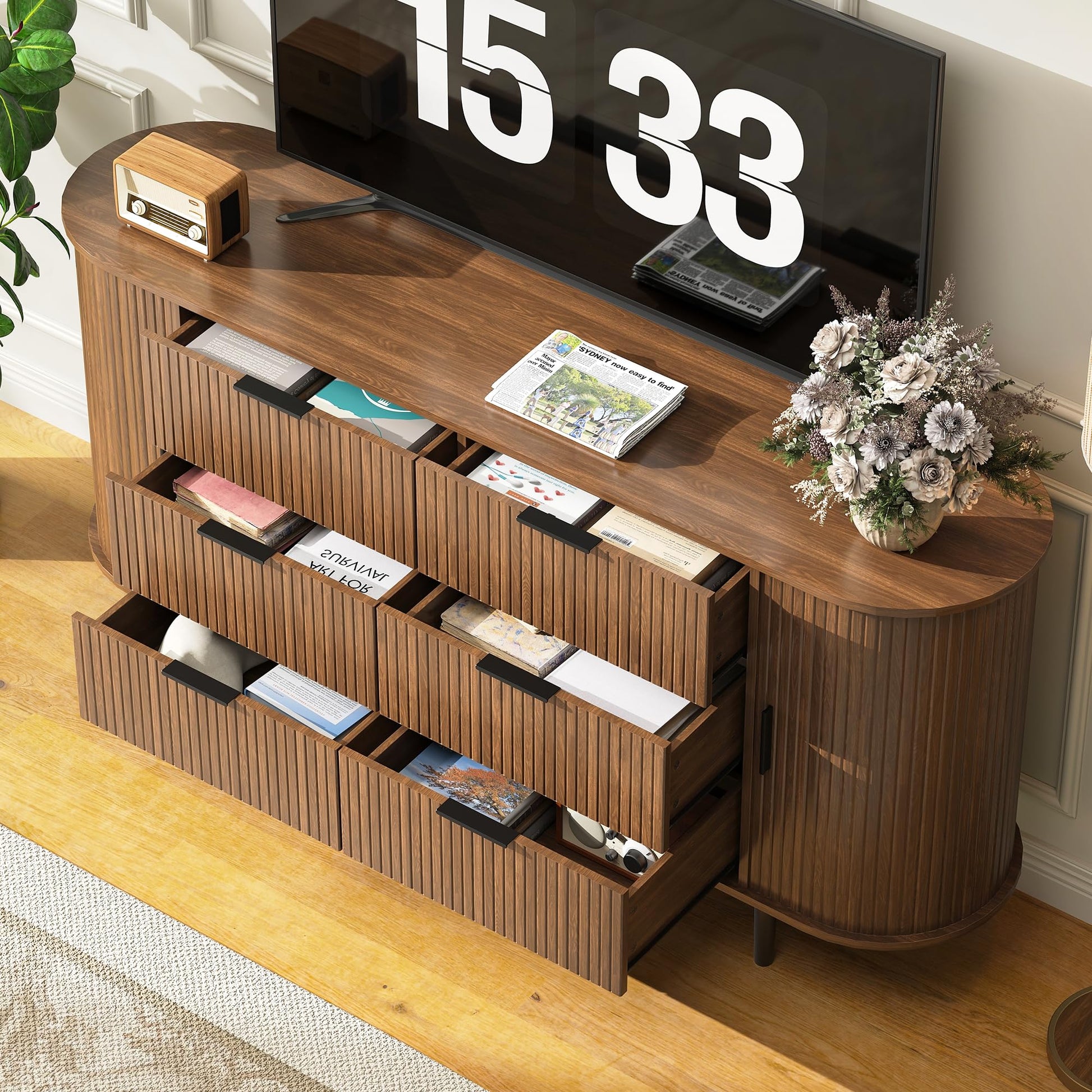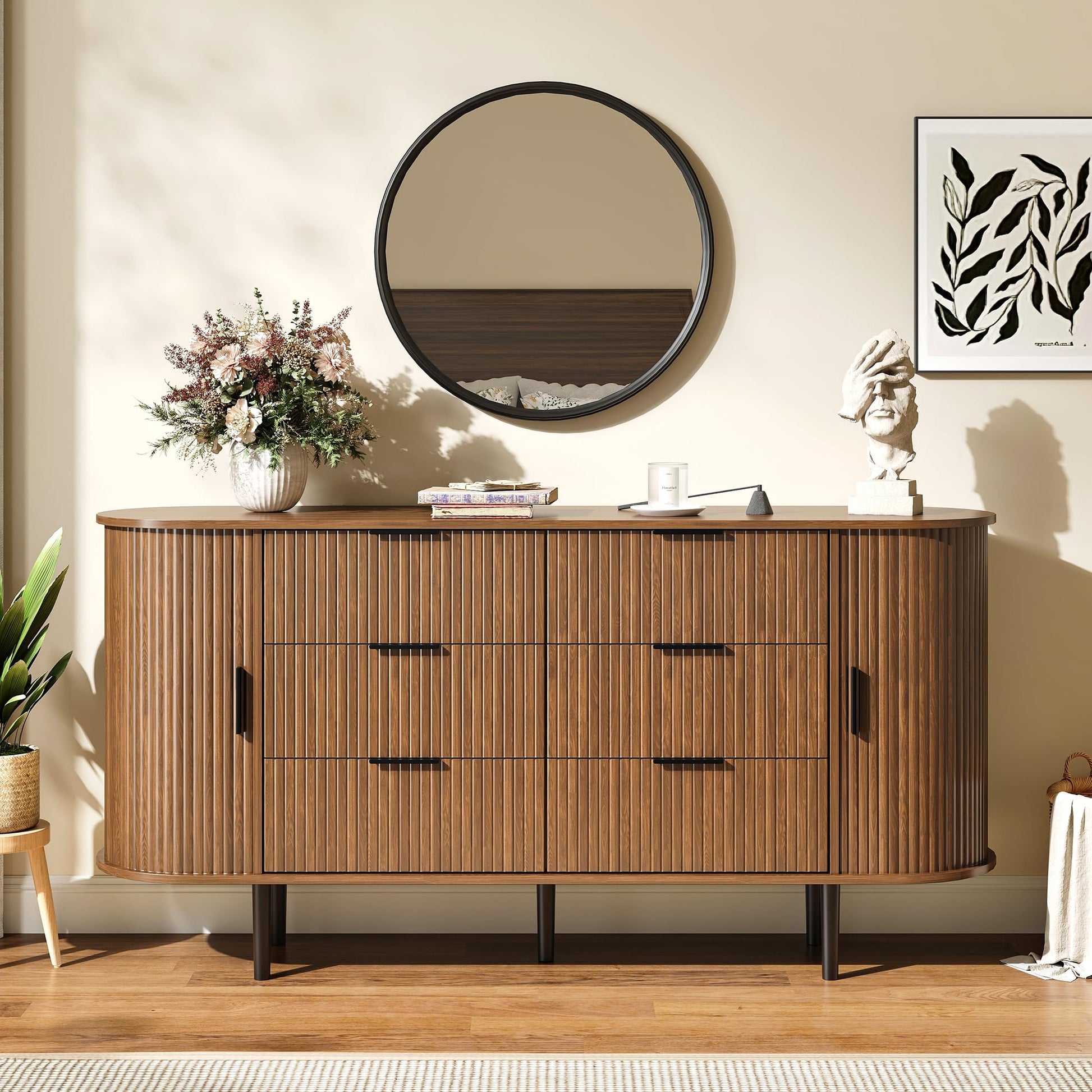 Fluted 6 Drawer Dresser 63" Wide with Metal Handles