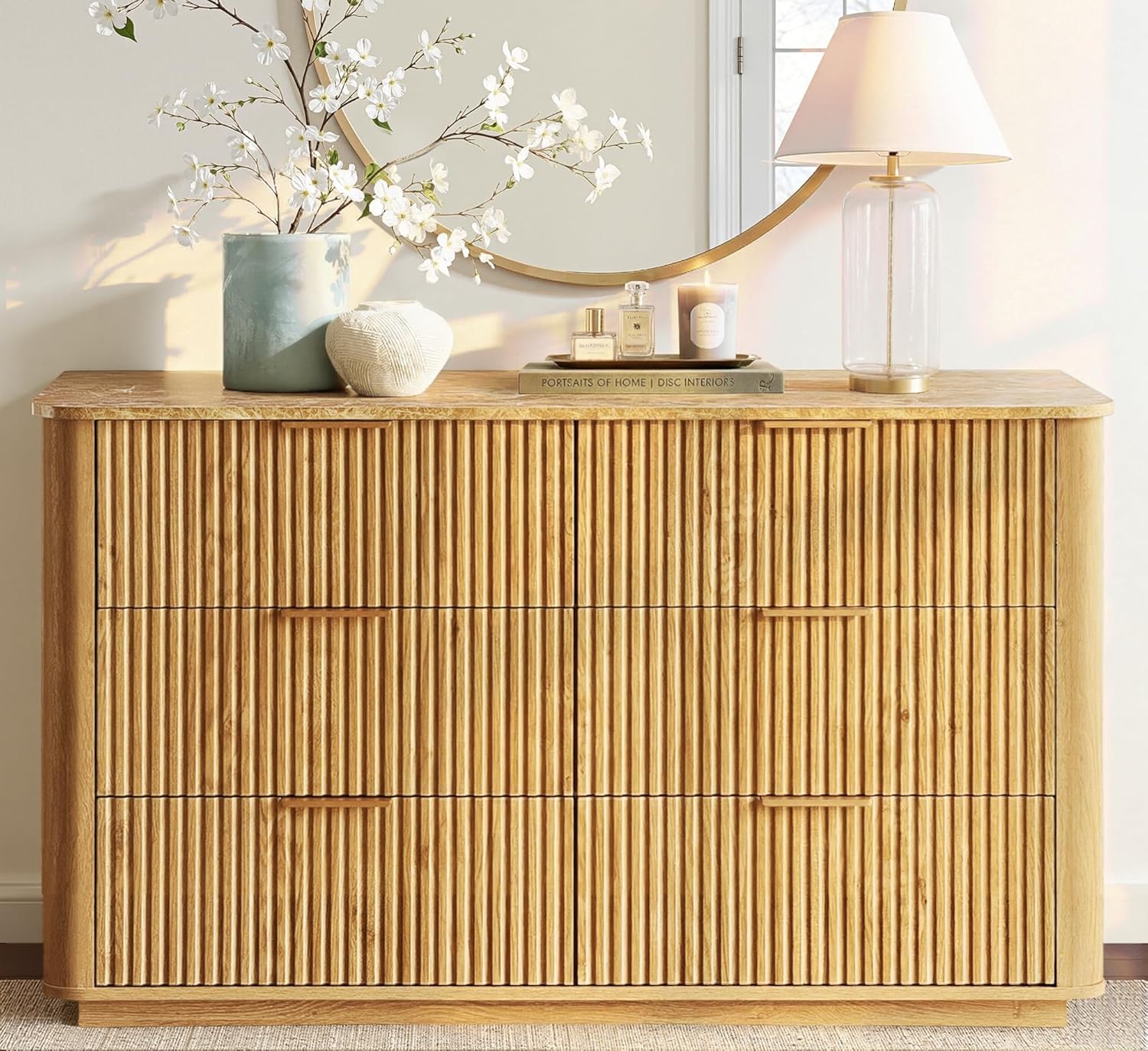 - Elegant Fluted Design with Faux Marble Top: Gently sculpted fluted drawer fronts paired with a smooth faux marble surface create a sophisticated focal point in any room