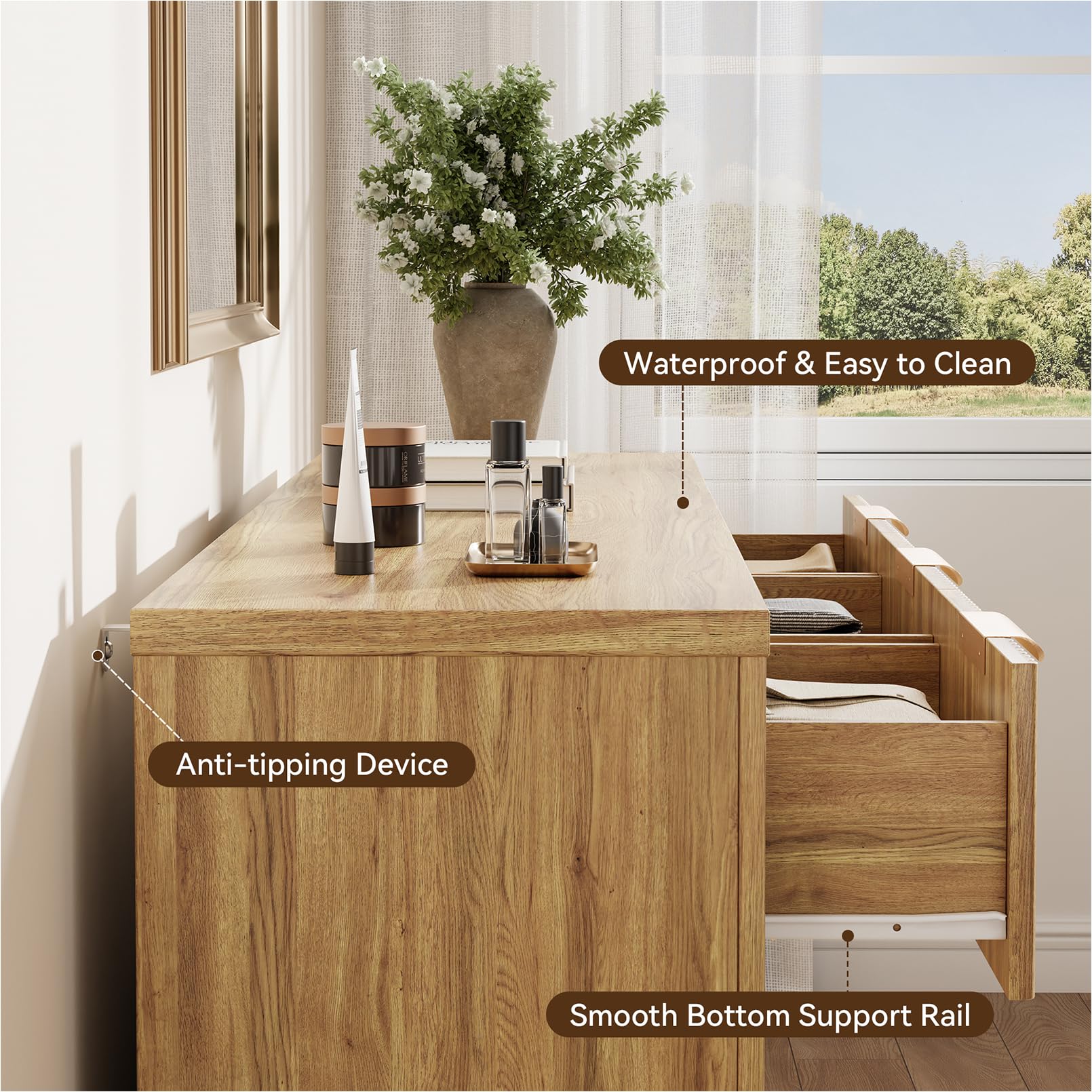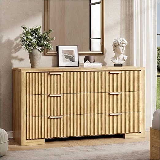 This modern dresser combines elegant fluted design with practical storage, featuring wave-like textured details and wide metal handles that add contemporary flair to any bedroom, living room, or entryway.