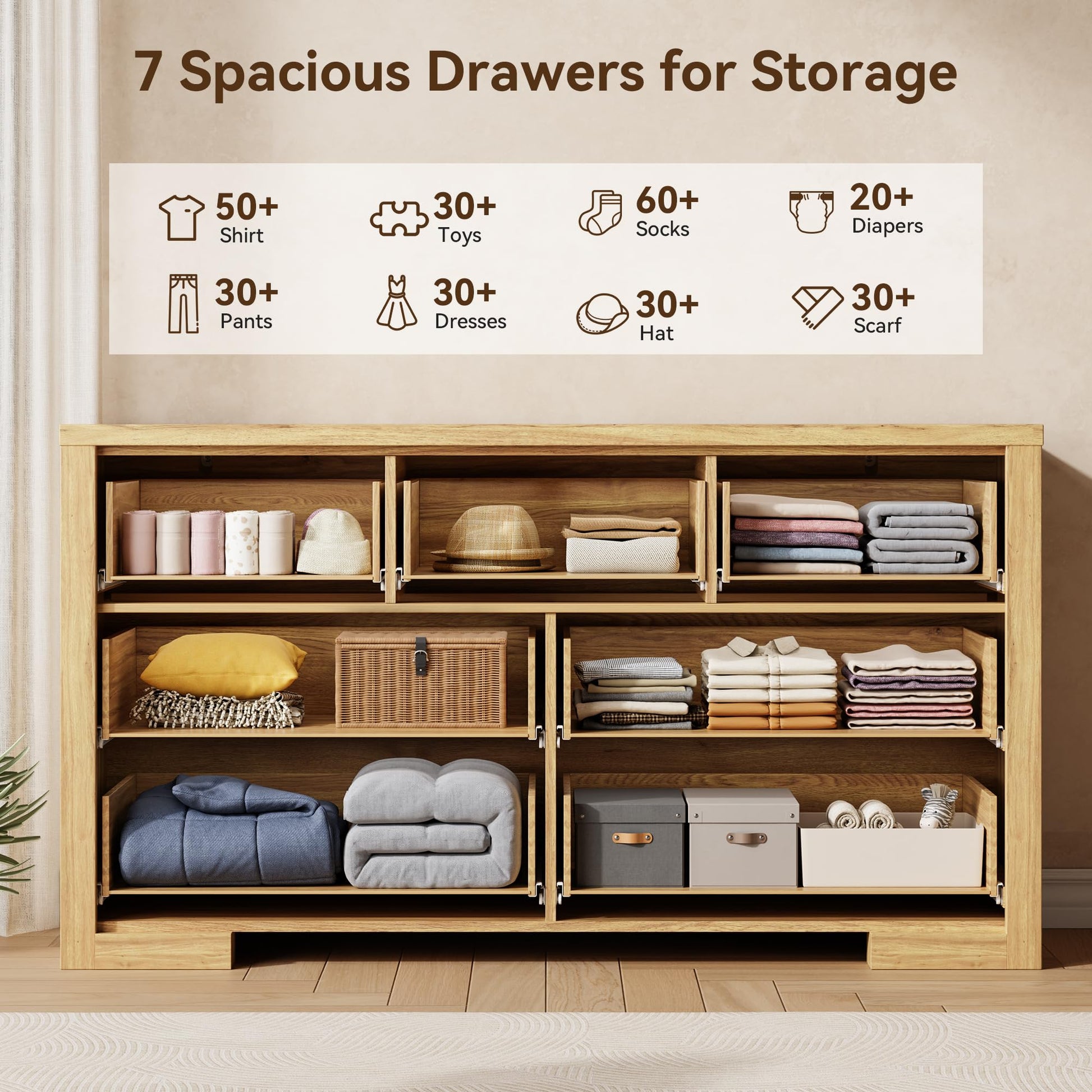 - 7 spacious drawers provide generous storage for clothing, accessories, and bedroom essentials