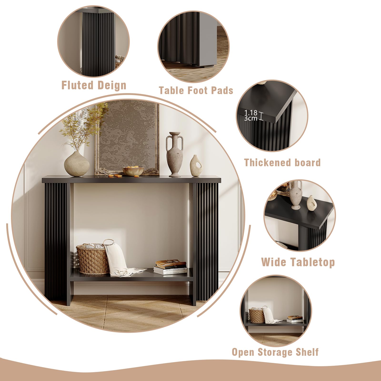This elegant console table features a distinctive fluted design with vertical grooves that create a modern yet timeless aesthetic. The 2-tier construction provides versatile storage and display options for any room in your home.