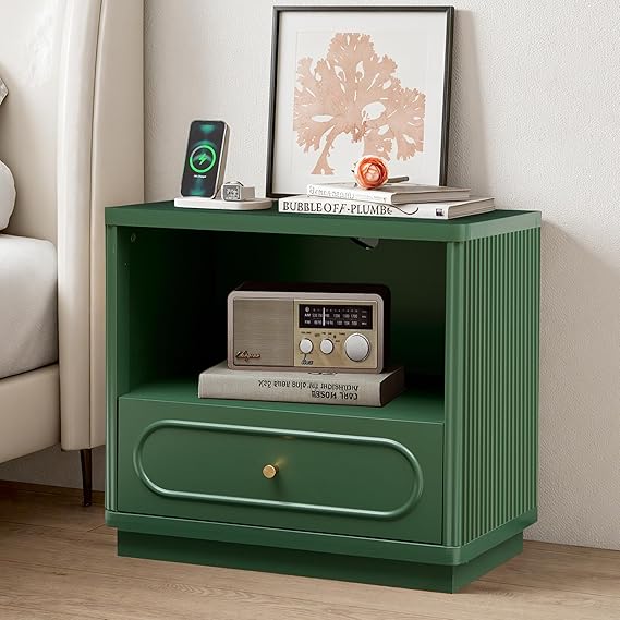 Fluted Nightstand with Charging Station and Drawer Storage