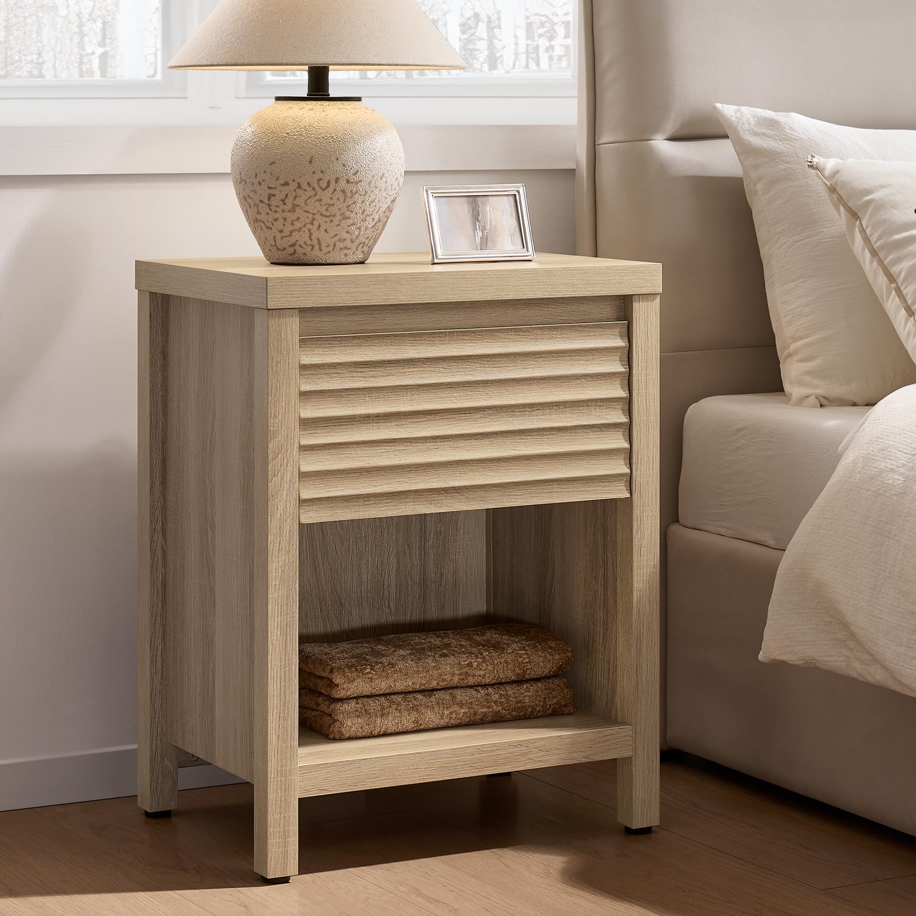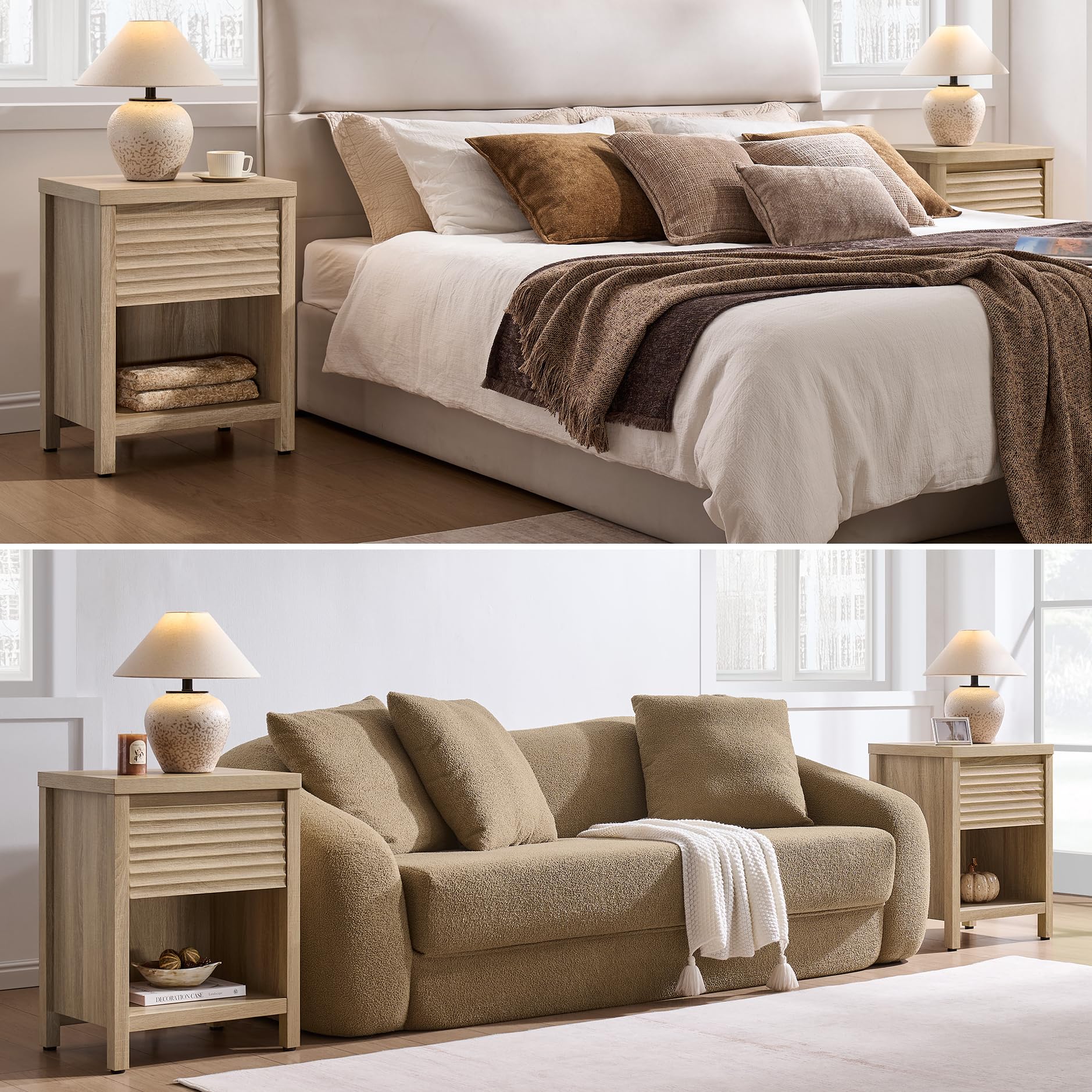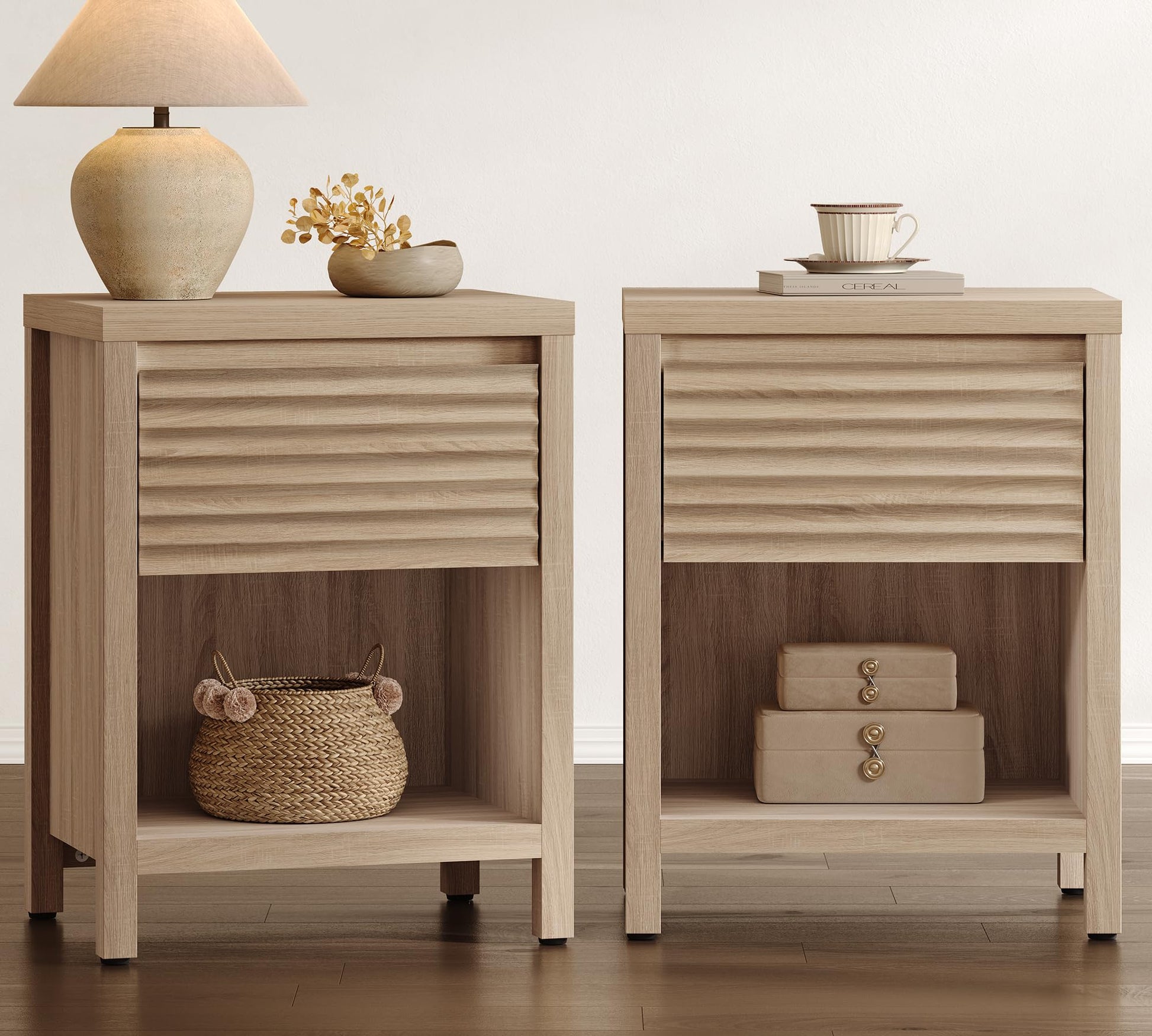Fluted Nightstand Set of 2 with Drawer and Storage Shelf