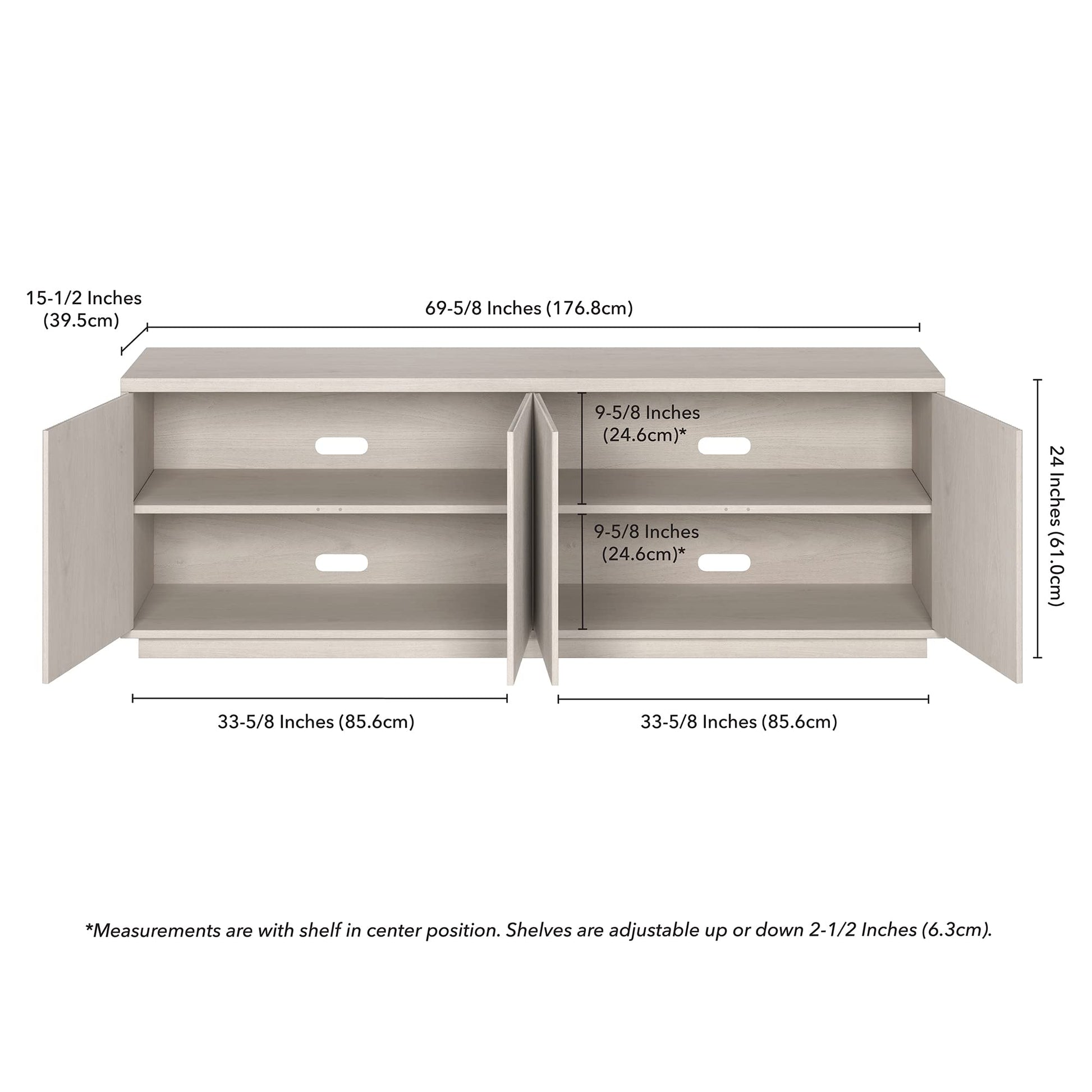 This entertainment console combines clean lines with smart functionality, offering ample hidden storage while maintaining a minimalist aesthetic. Perfect for living rooms, family rooms, or offices where style meets purpose.