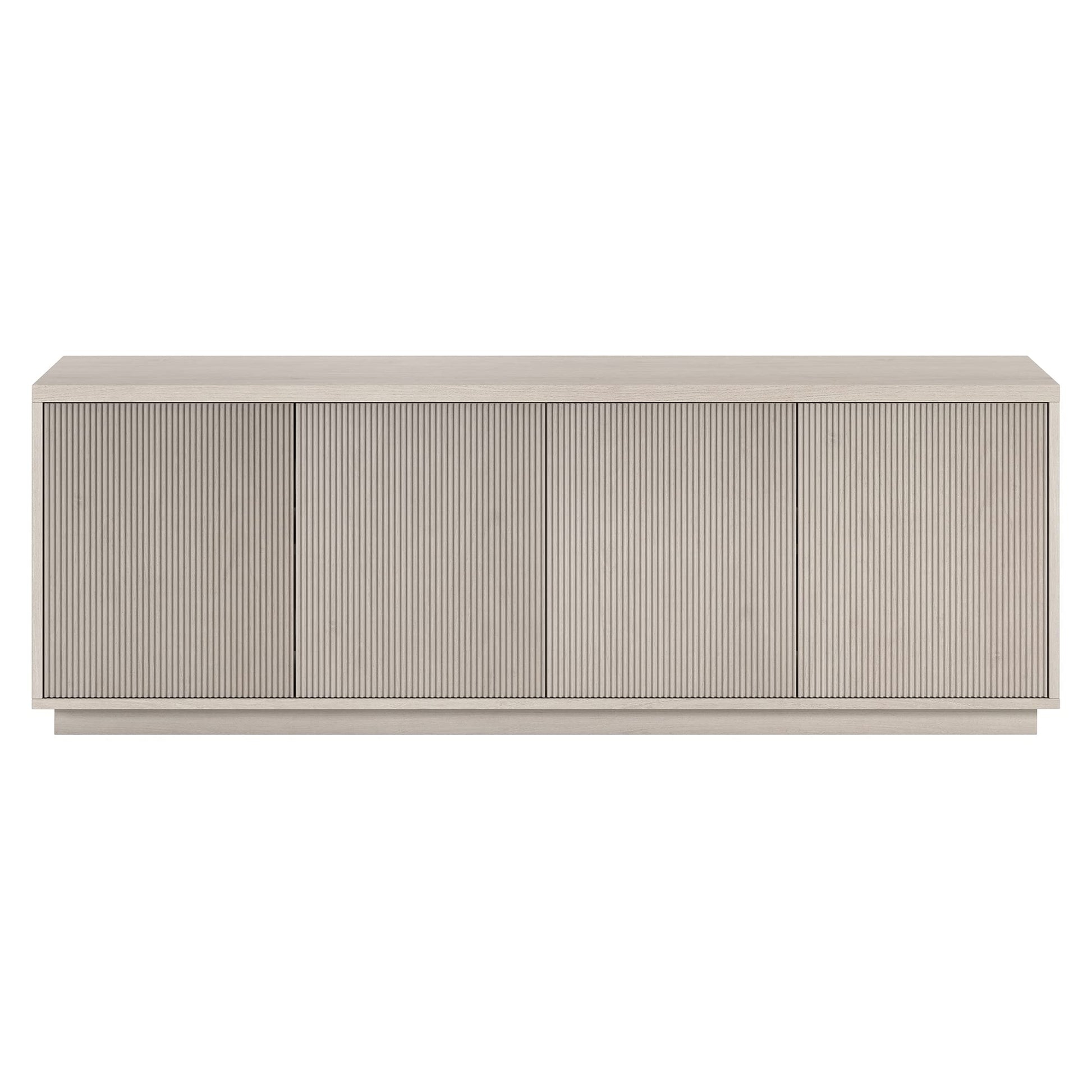 Elevate your living space with this sleek fluted TV stand designed for flat-screen TVs up to 75 inches. The modern plinth base creates a seamless, grounded aesthetic that blends effortlessly into contemporary and transitional interiors.